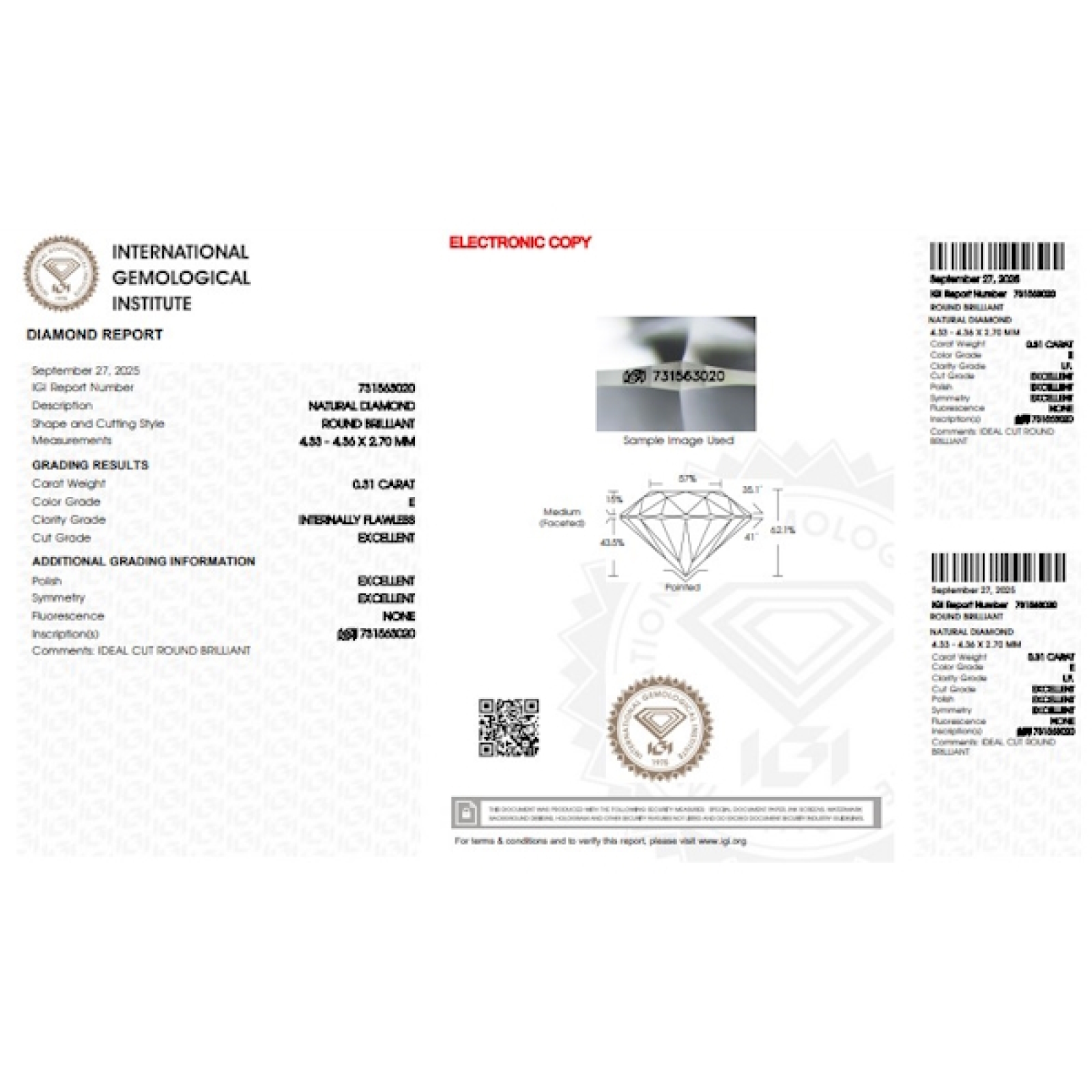 IGI-zertifizierter Diamant CT 0,31 E IF