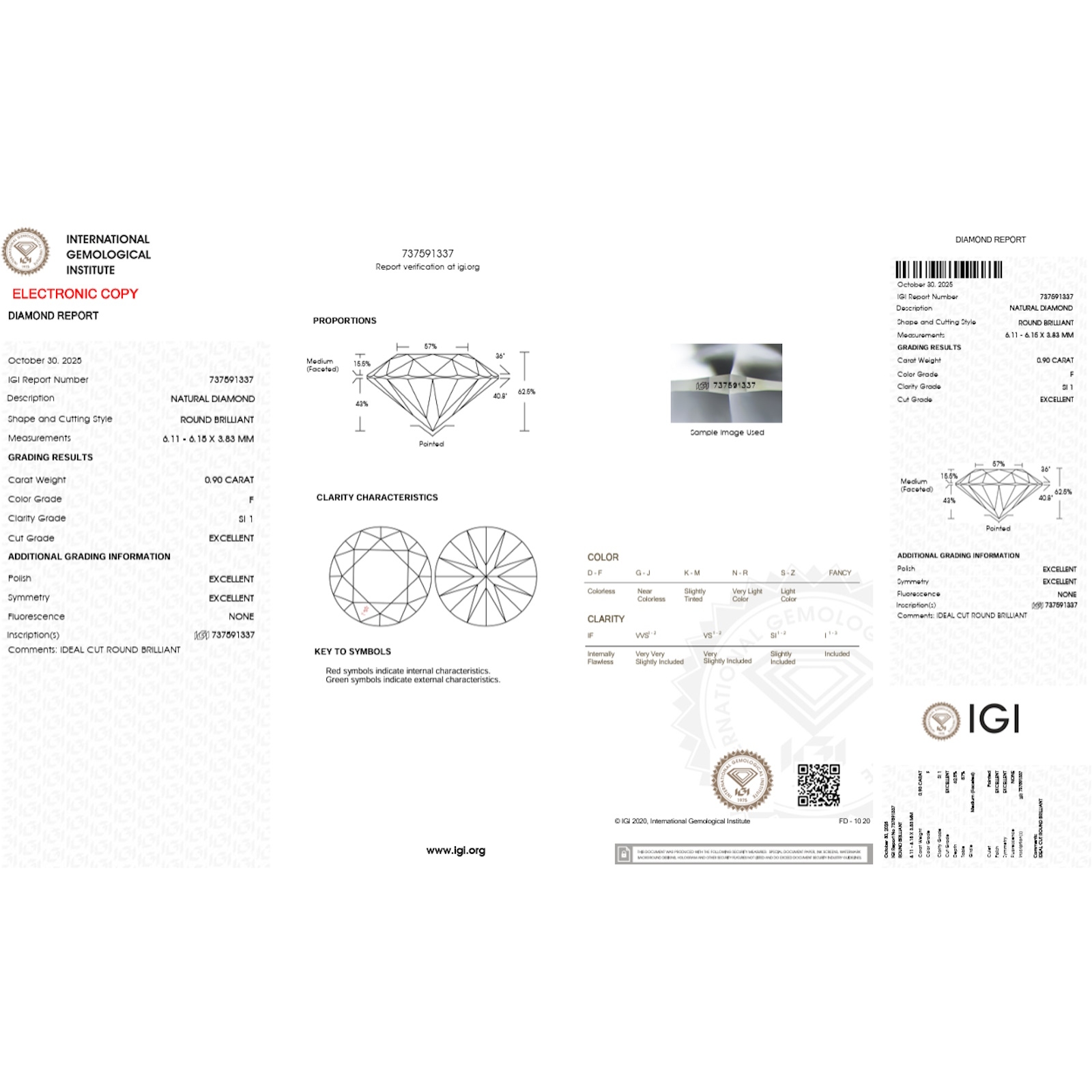 IGI-zertifizierter Diamant CT 0,90 F SI1