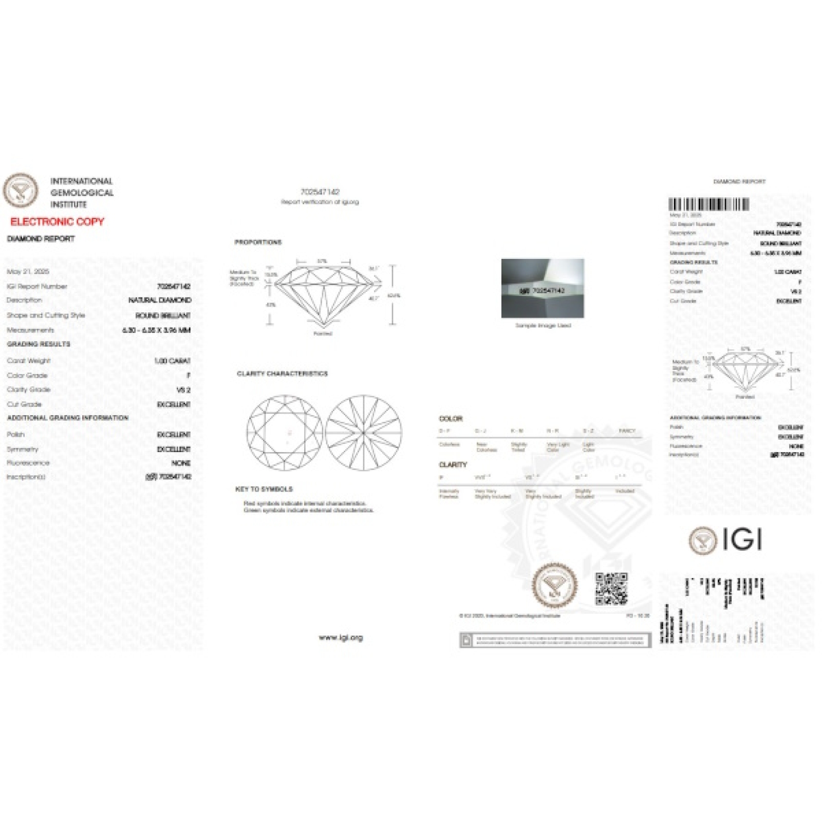 IGI-zertifizierter Diamant CT 1,00 F VS2