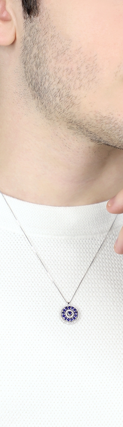 Herrenkette Weißgold mit rundem Saphir-Anhänger