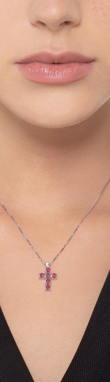 Weißgold Kette mit Kreuzanhänger aus Rubinen