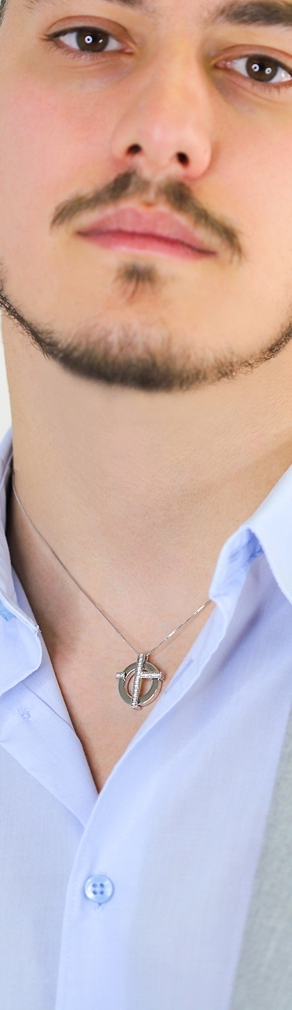 Moderne Kreuz-Kette für Herren aus Weißgold 18K
