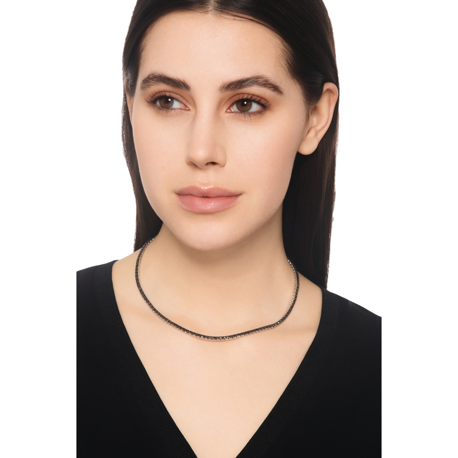 Tennis Kette schwarze Diamanten Weissgold 18K