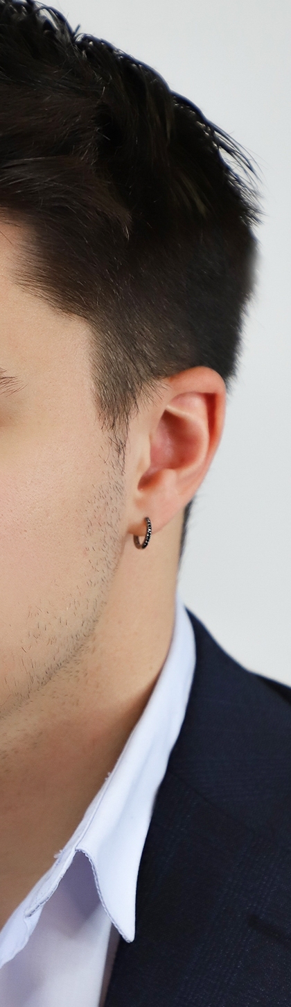 Einzelne Creole Herren Weißgold mit schwarzen Diamanten