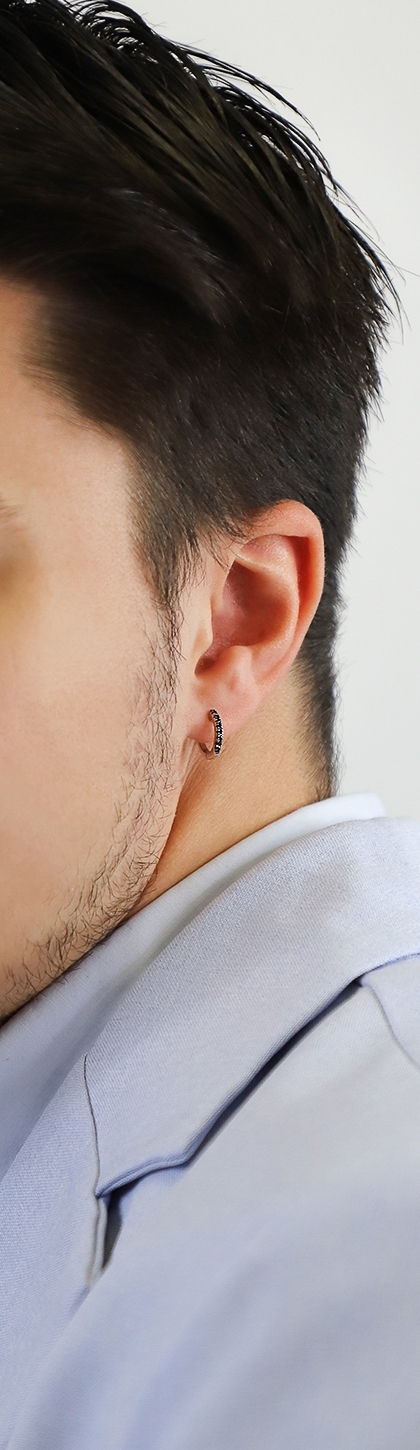 Weißgold 18K einzelne Creole Herren mit schwarzen Diamanten