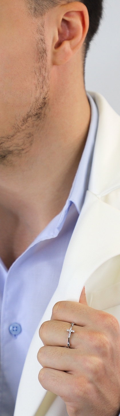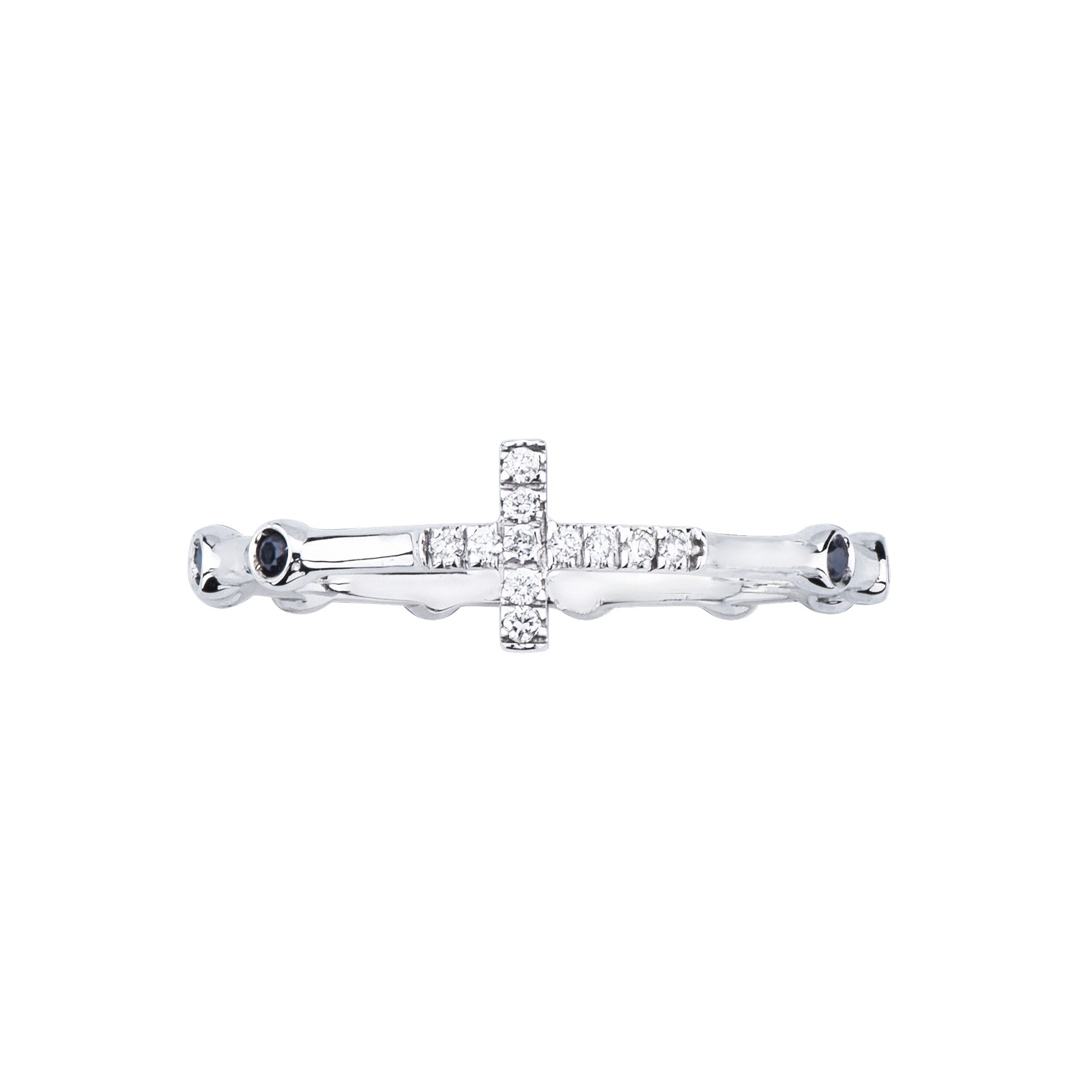 Weißgold Herren Ring mit Diamantkreuz und schwarzen Diamanten