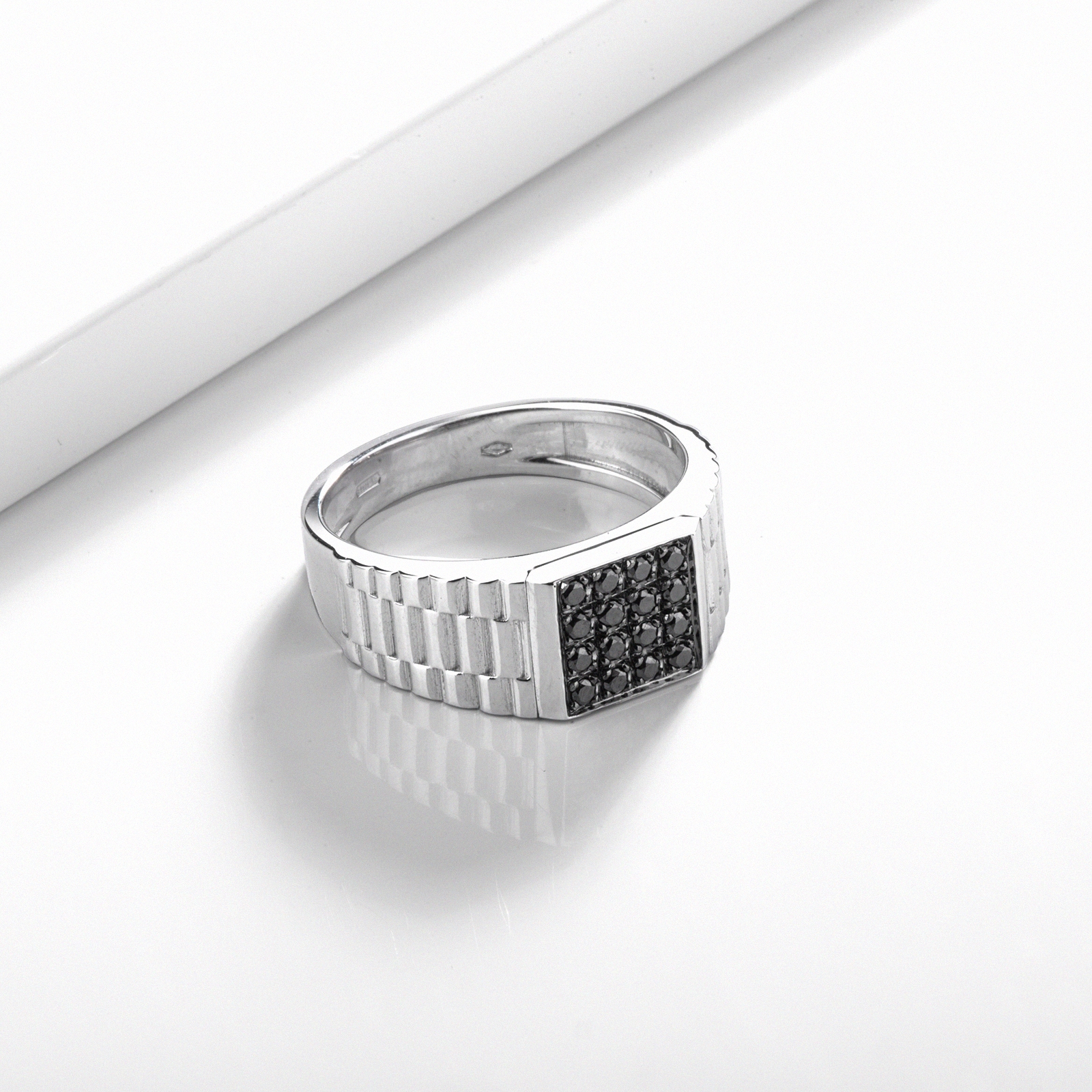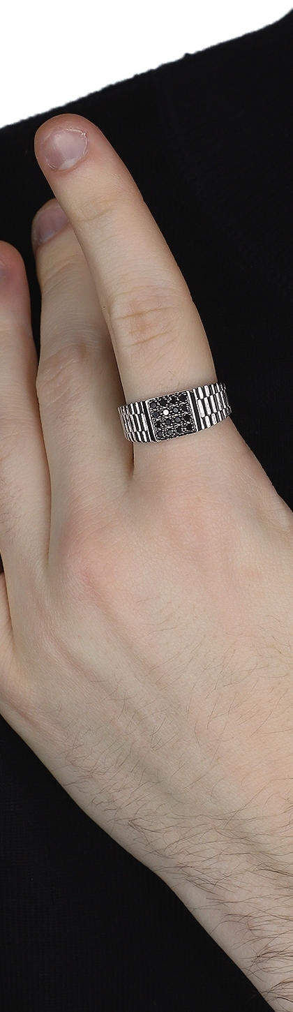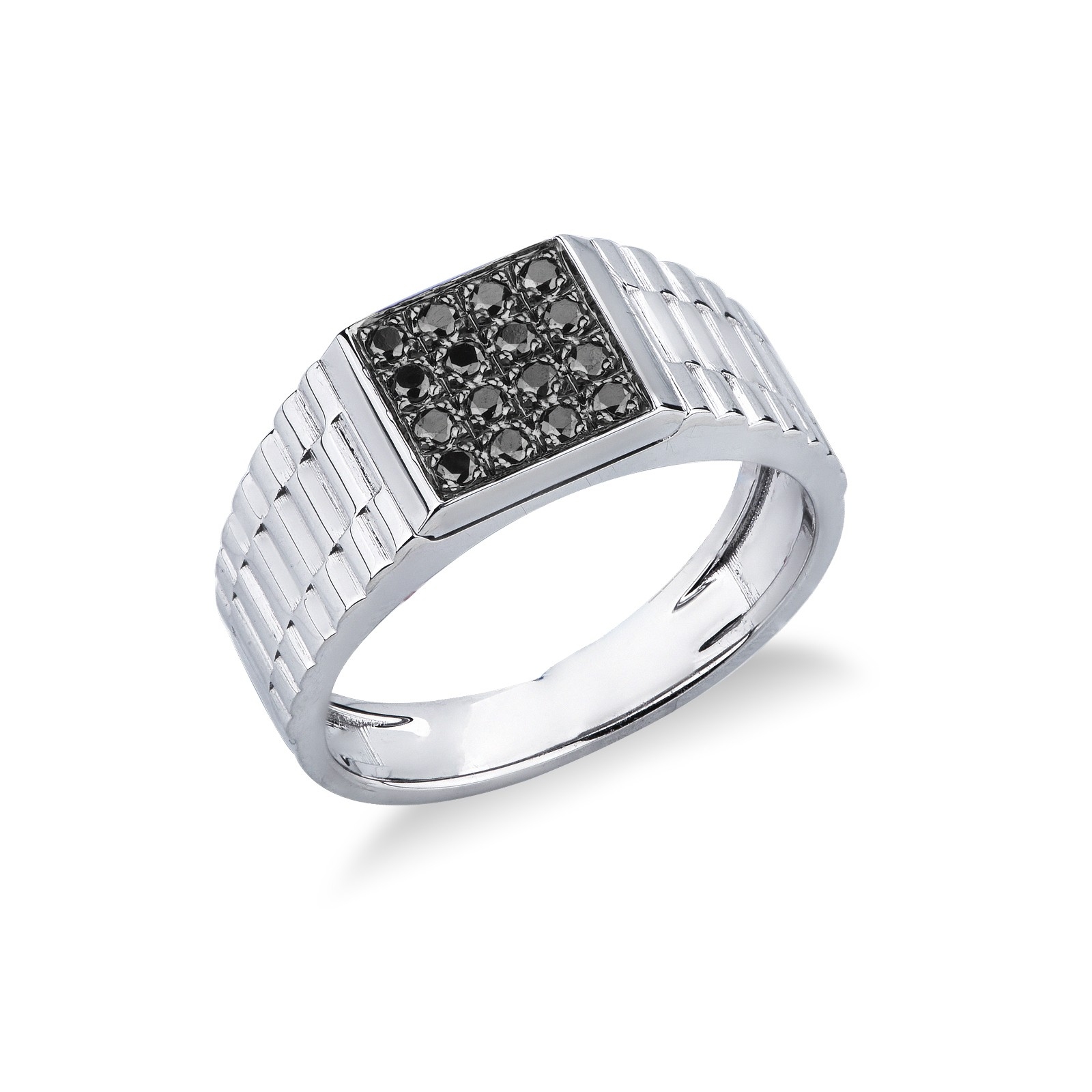 Herrenring Weißgold 750 mit schwarzen Diamanten Pavé