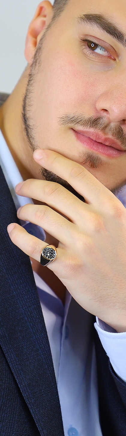Herrenring Siegelring Roségold mit schwarzen Diamanten Pavé