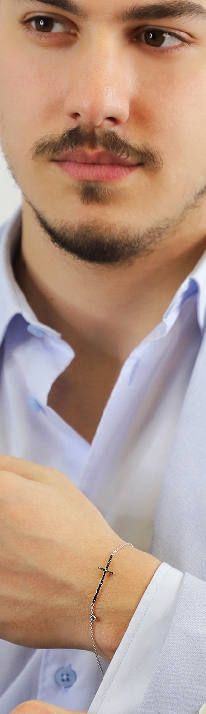 Herrenarmband aus 18k Weißgold mit Kreuz aus schwarzen Diamanten