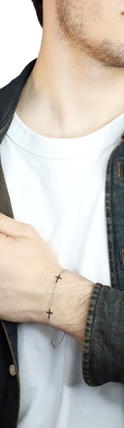 Weißgold 18k Herrenarmband mit Kreuzen aus schwarzen Diamanten, 20 cm