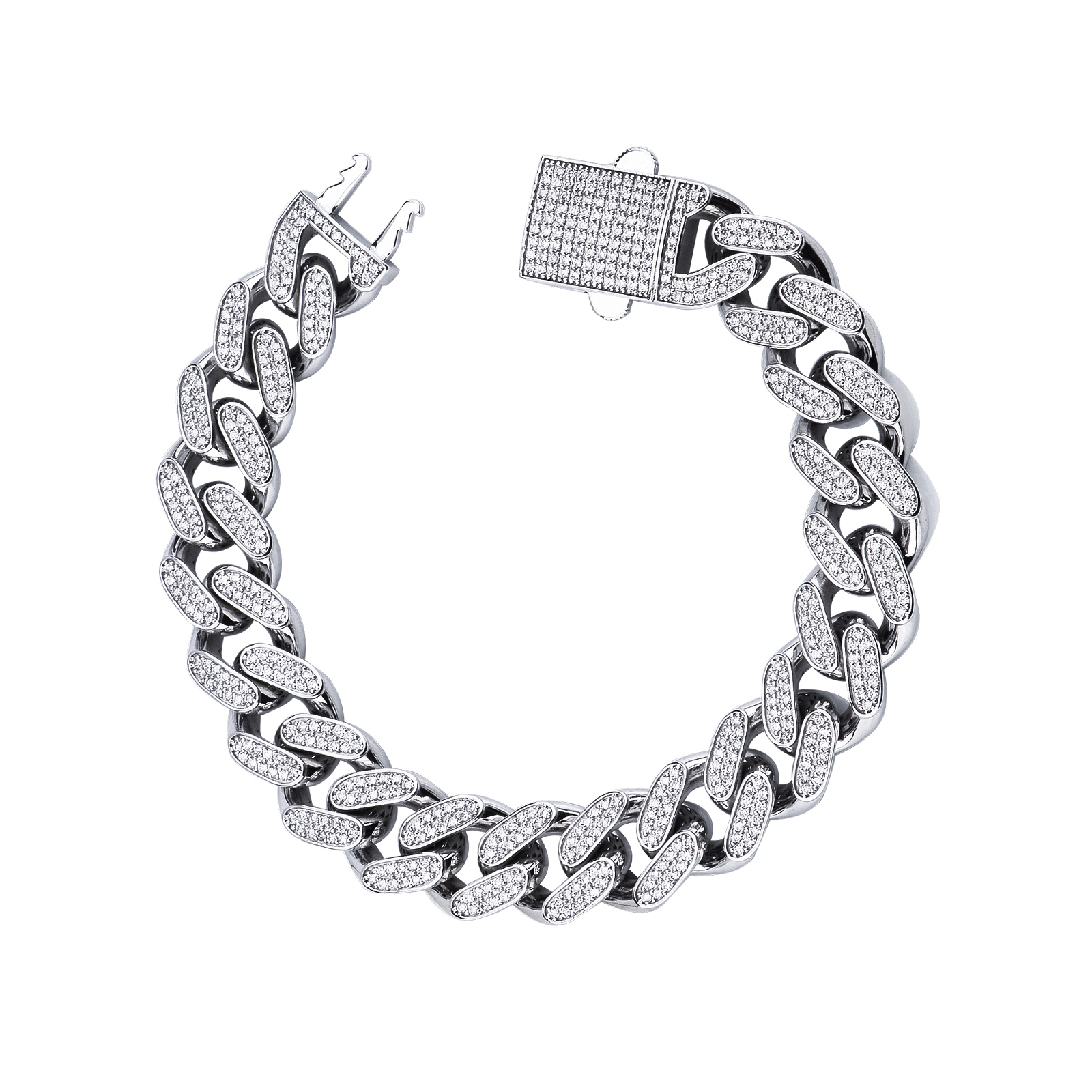 Iced Out Cuban Armband aus 750er Weißgold mit Diamanten