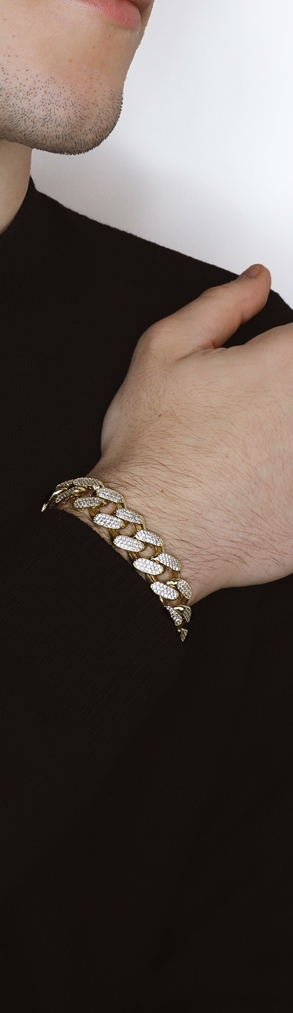 Iced Out Herrenarmband aus Gelbgold 750 mit Zirkonia