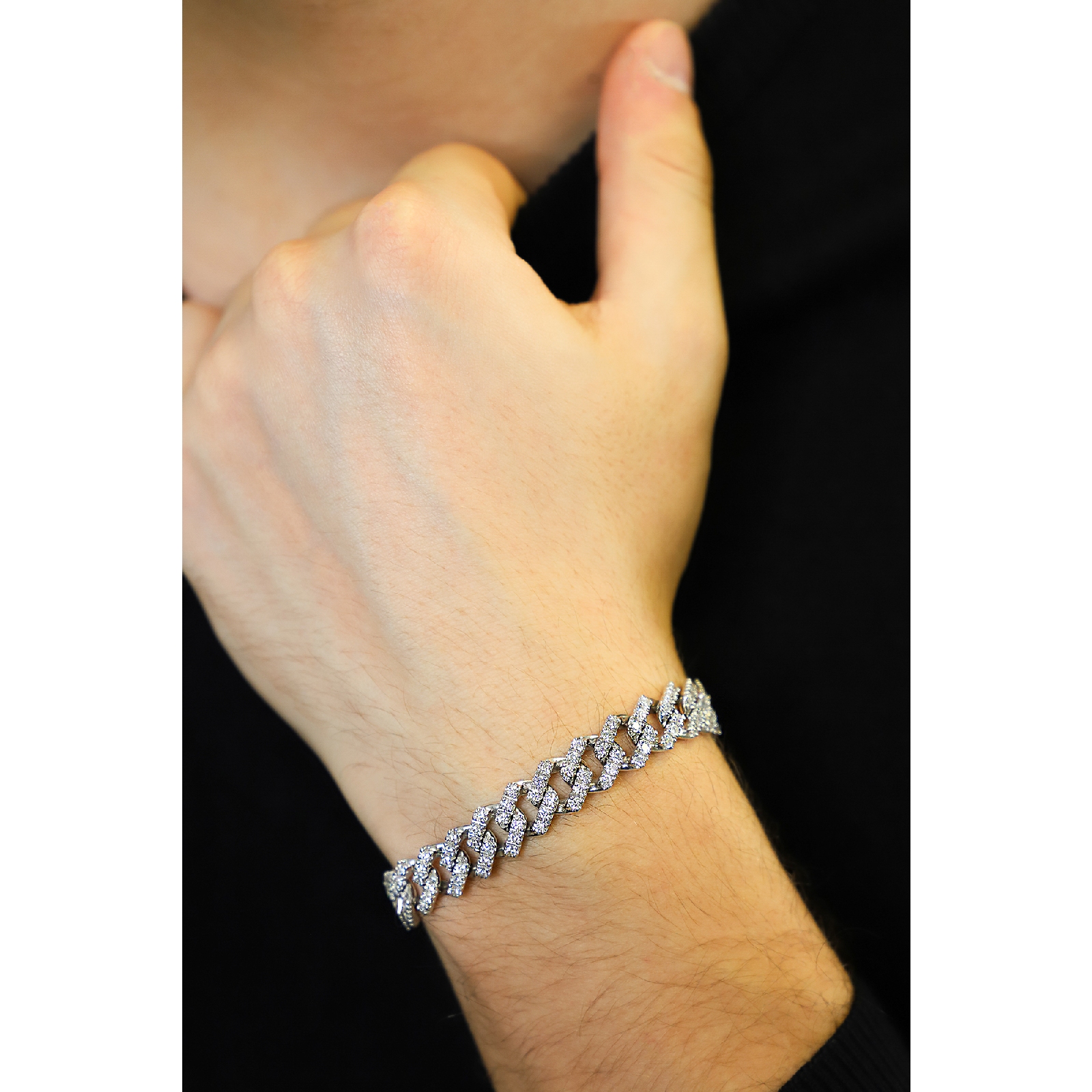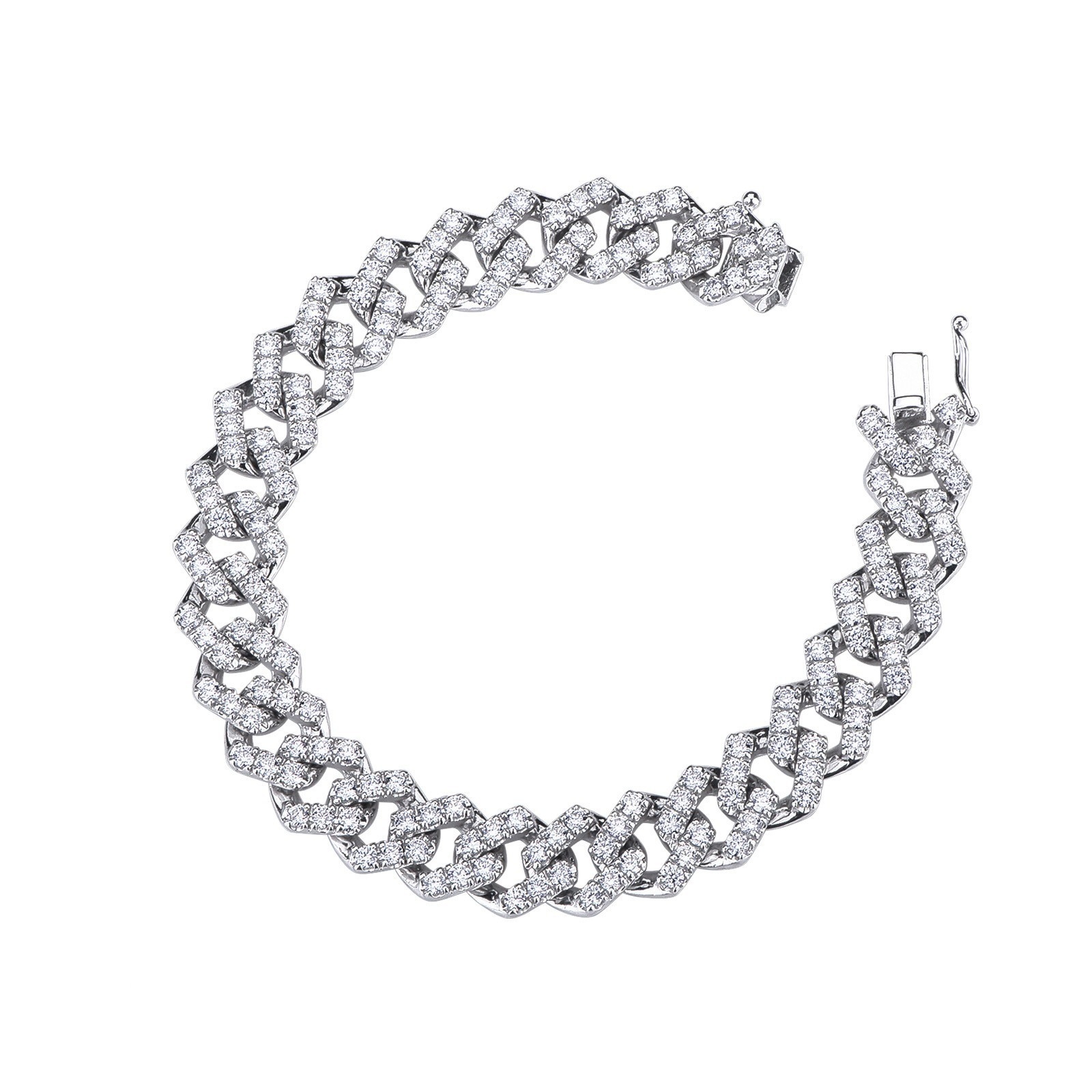 Weißgold Cuban Link Armband mit Diamanten