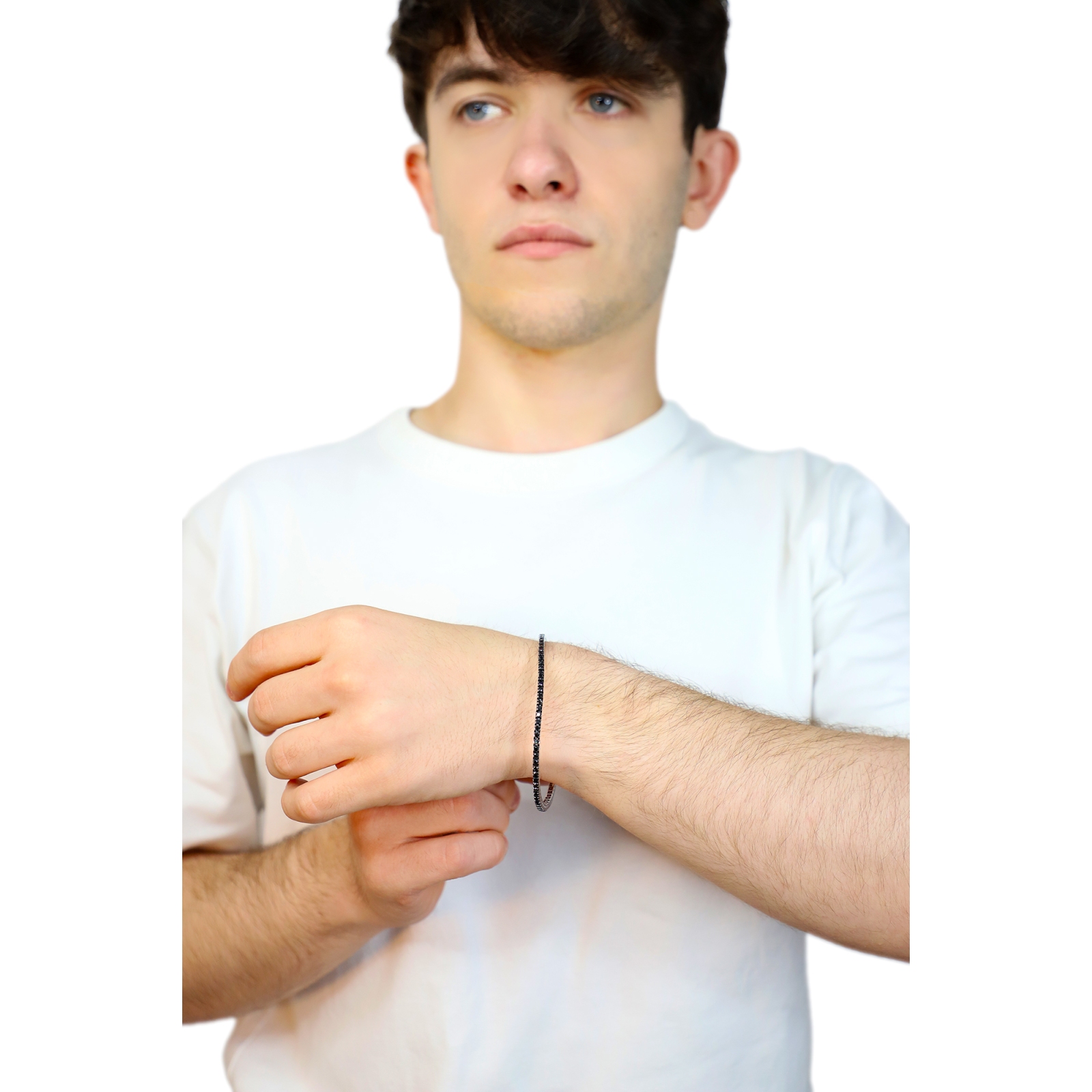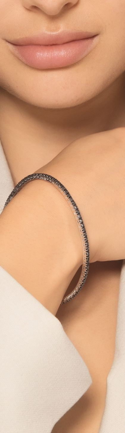 750er Weißgold elastisches Tennisarmband schwarzen Diamanten