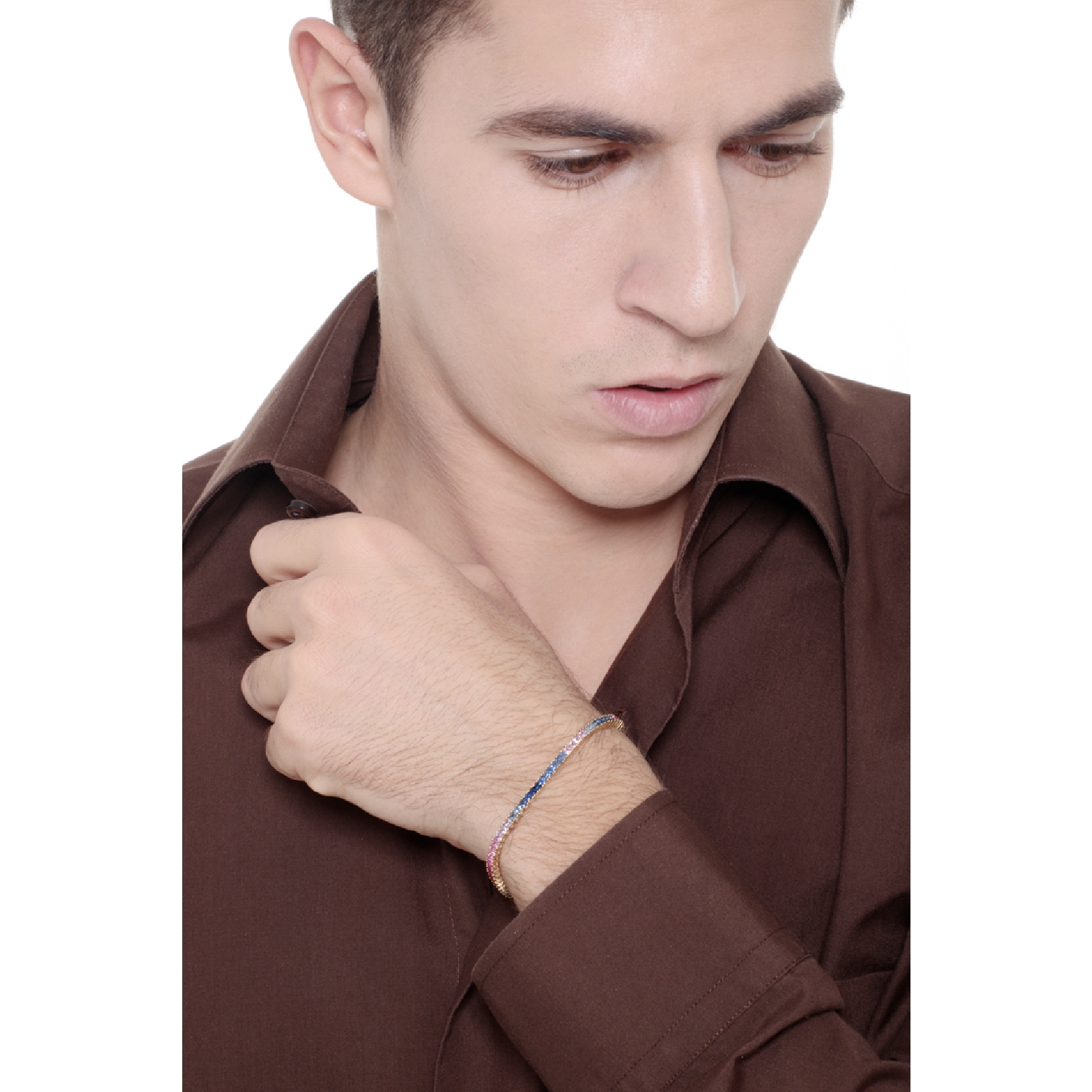 Ob blauer Saphir, rosa, grüner, gelber oder violetter Stein – jede Farbe steht für Individualität und Stilbewusstsein. Das Armband ist nicht nur ein Hingucker, sondern auch ein Ausdruck von Eleganz und Persönlichkeit.