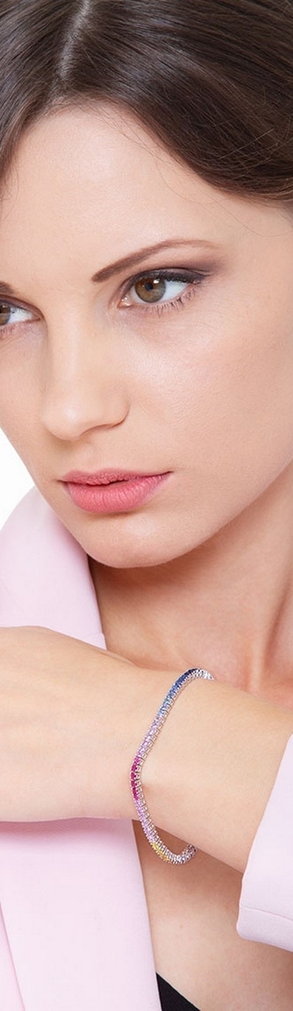 Tennisarmband Weißgold mit Saphiren Rainbow Kollektion