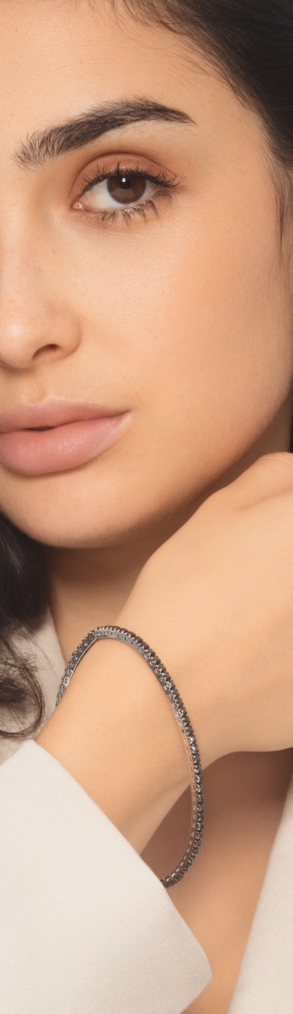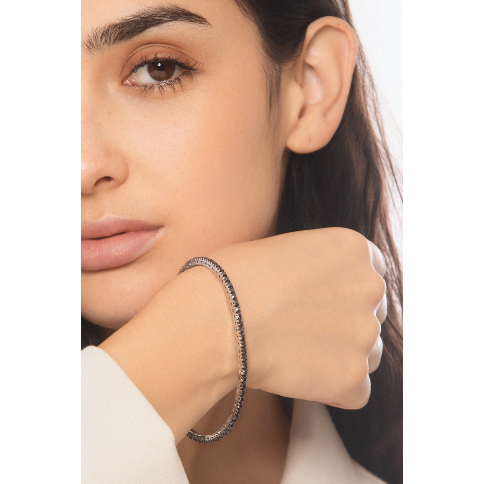 Weißgold elastisches Tennisarmband schwarzen Diamanten