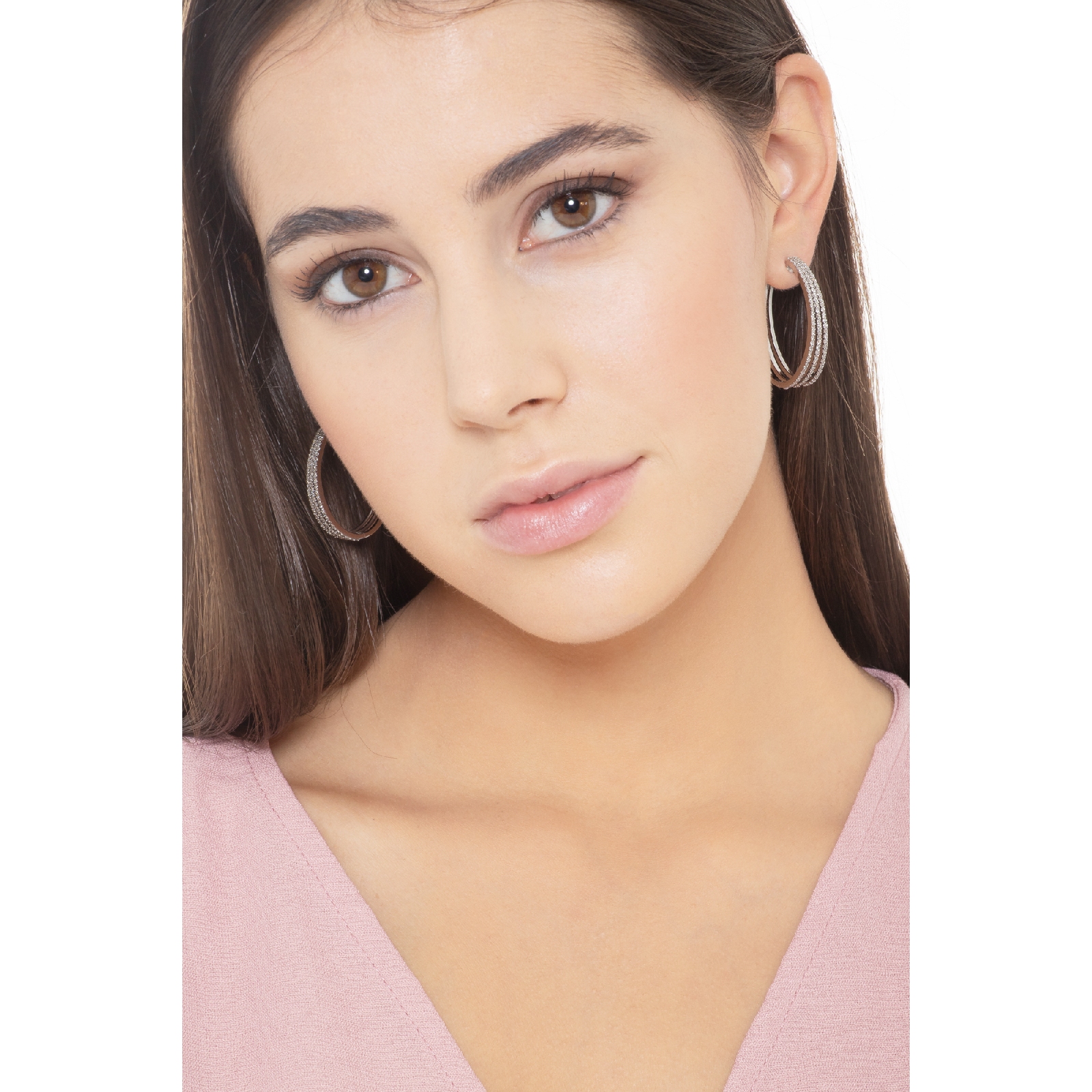 Creolen aus 18k Weißgold mit drei Reihen Diamanten.