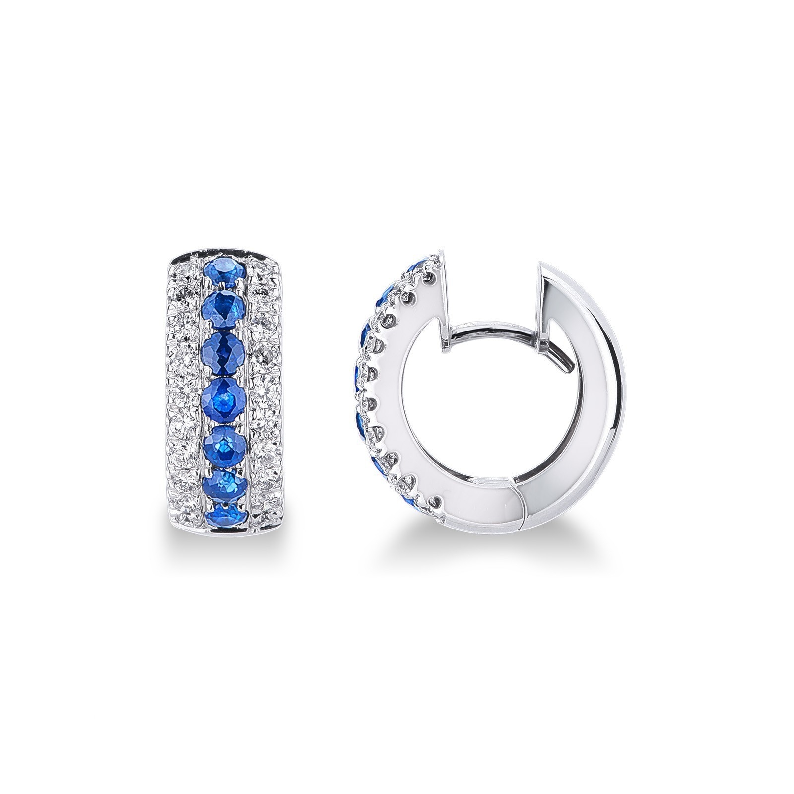 Creolen Weißgold 18K mit Diamanten und blauen Saphiren