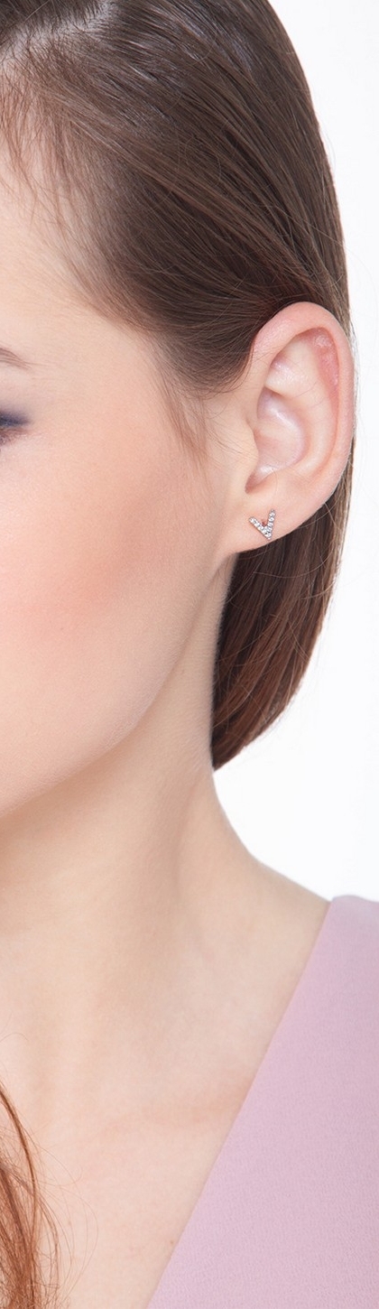 Einzelner Ohrstecker mit V aus Diamanten Weissgold