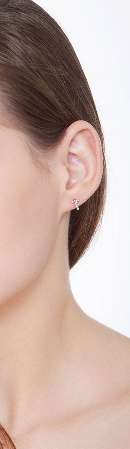 Ohrring mit Buchstabe T aus Weißgold 750 und Diamanten
