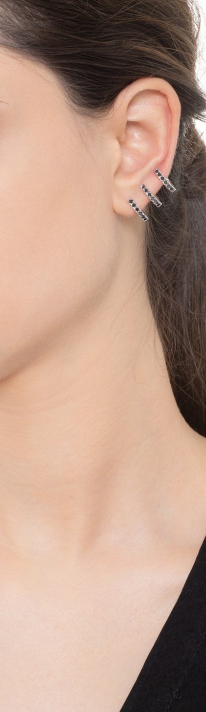Weißgold 18k spiralförmiger einzelner Ohrring mit schwarzen Diamanten, linkes Ohr