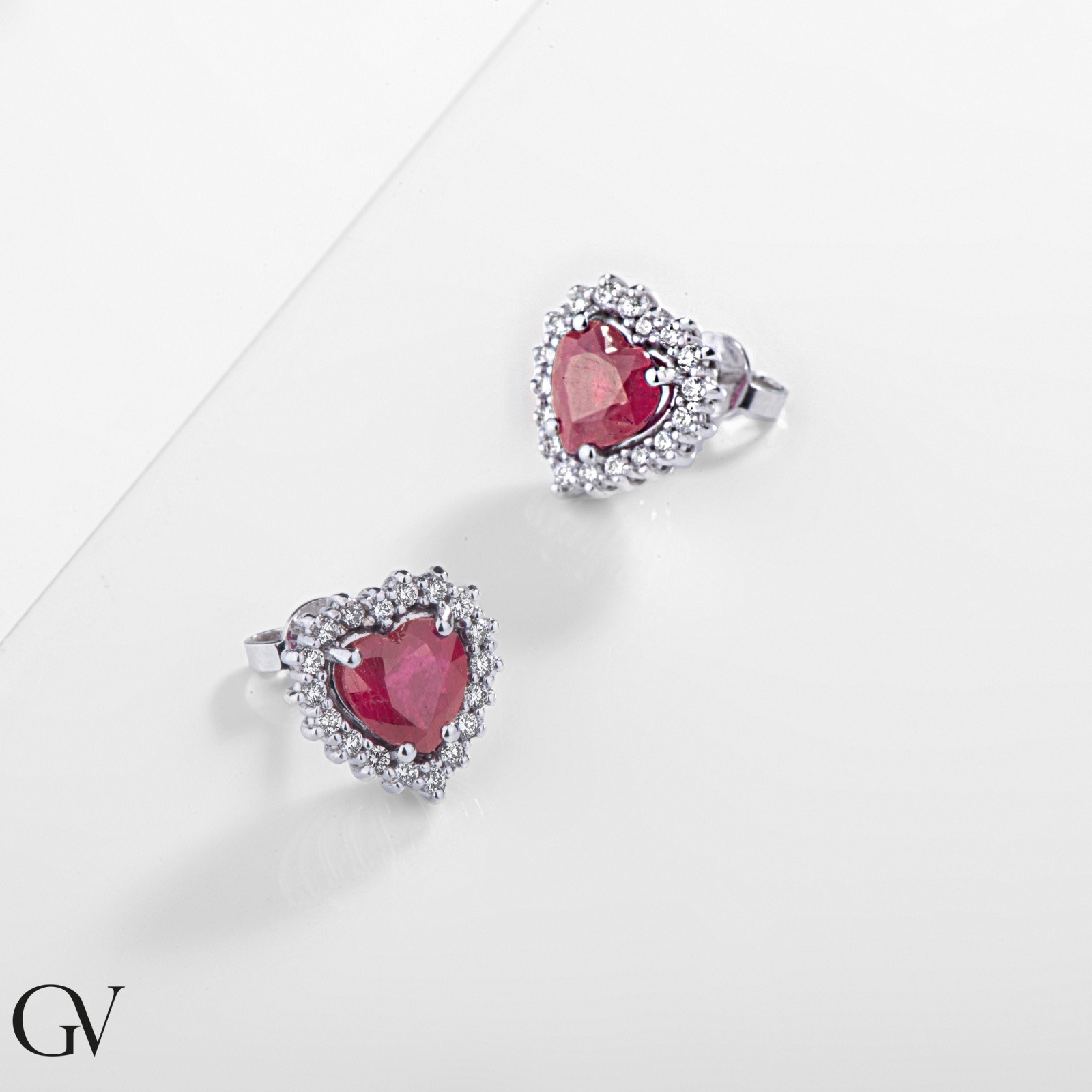 Halo Herz-Ohrstecker aus Rubinen und Brillanten
