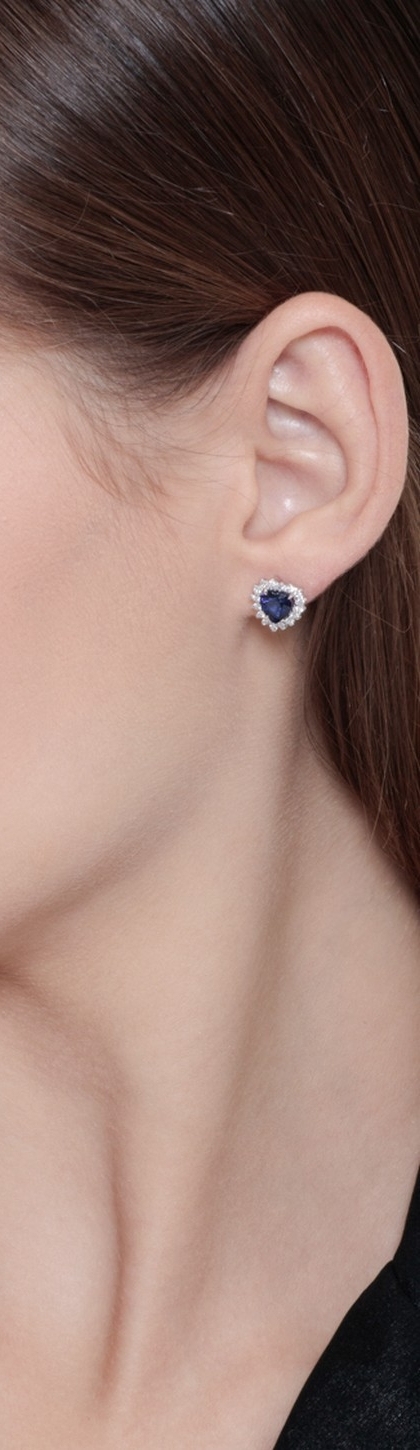 Halo Herz Ohrstecker mit Saphiren und Brillanten