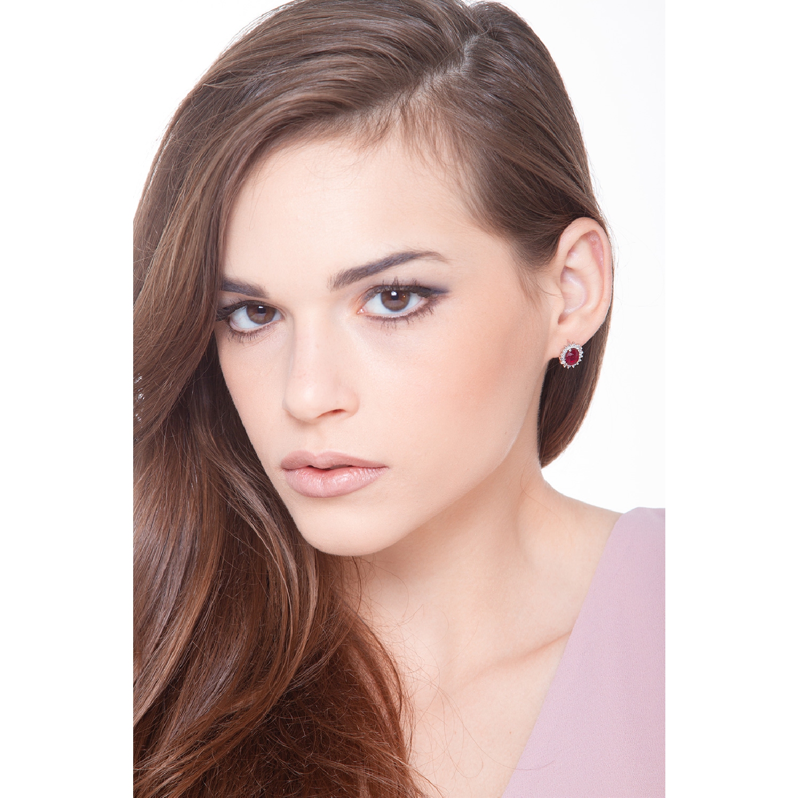 Halo Ohrstecker mit Rubinen Weißgold