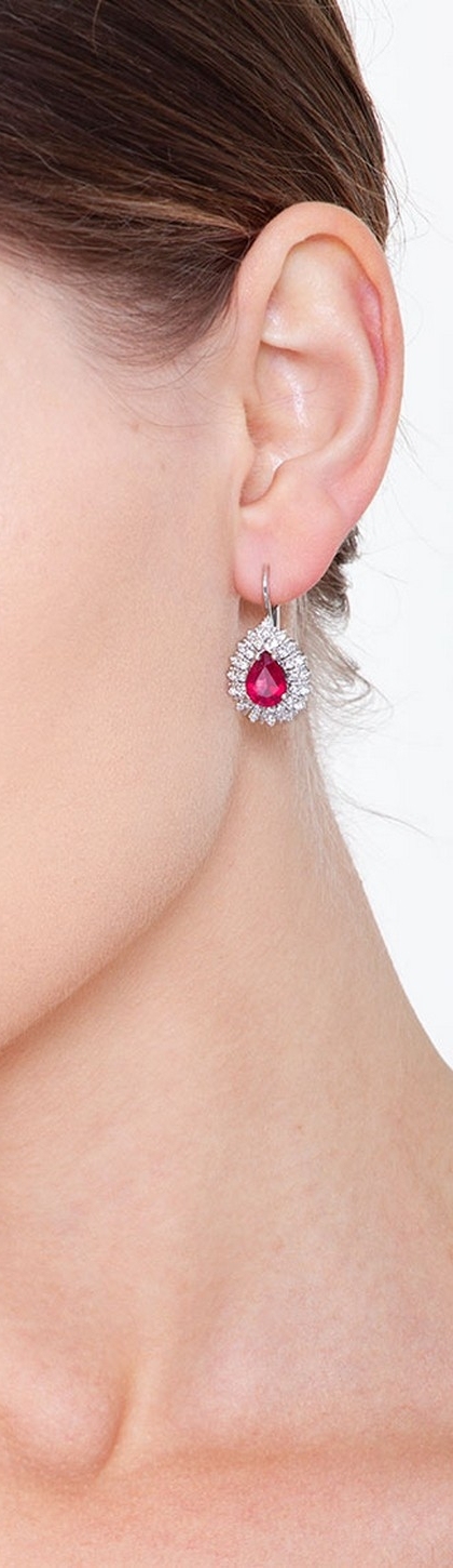 Ohrhänger mit tropfenförmigen Rubinen und Diamanten