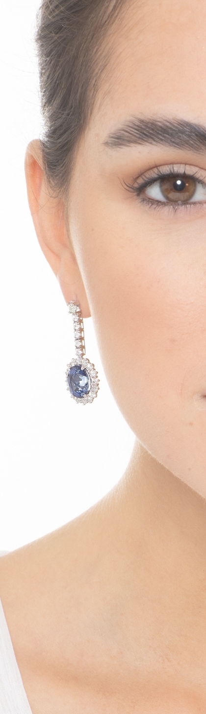 Diamant Ohrhänger Weißgold mit Saphir blau