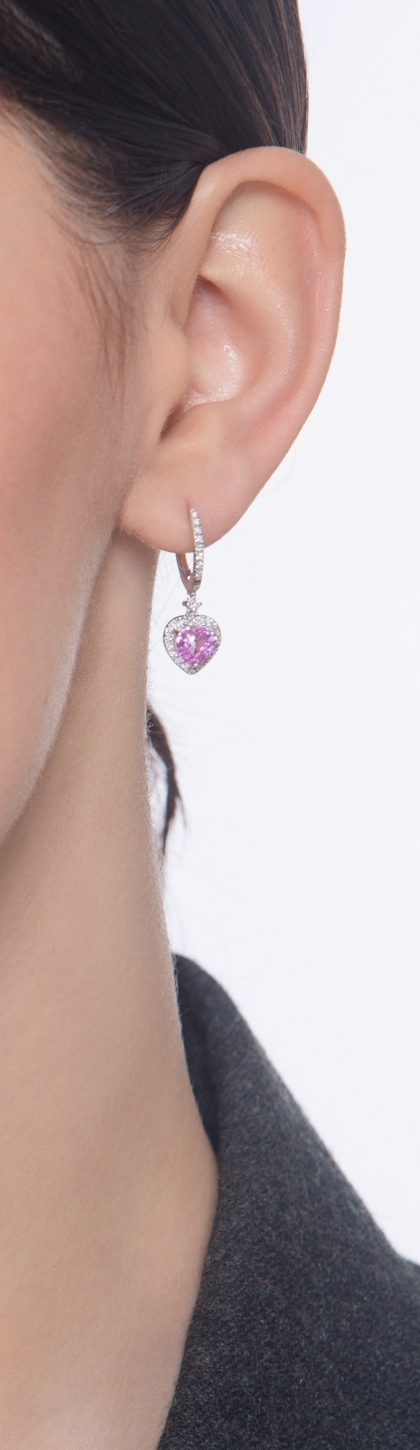 Ohrhänger Weißgold mit Herzen aus rosa Saphiren und Diamanten