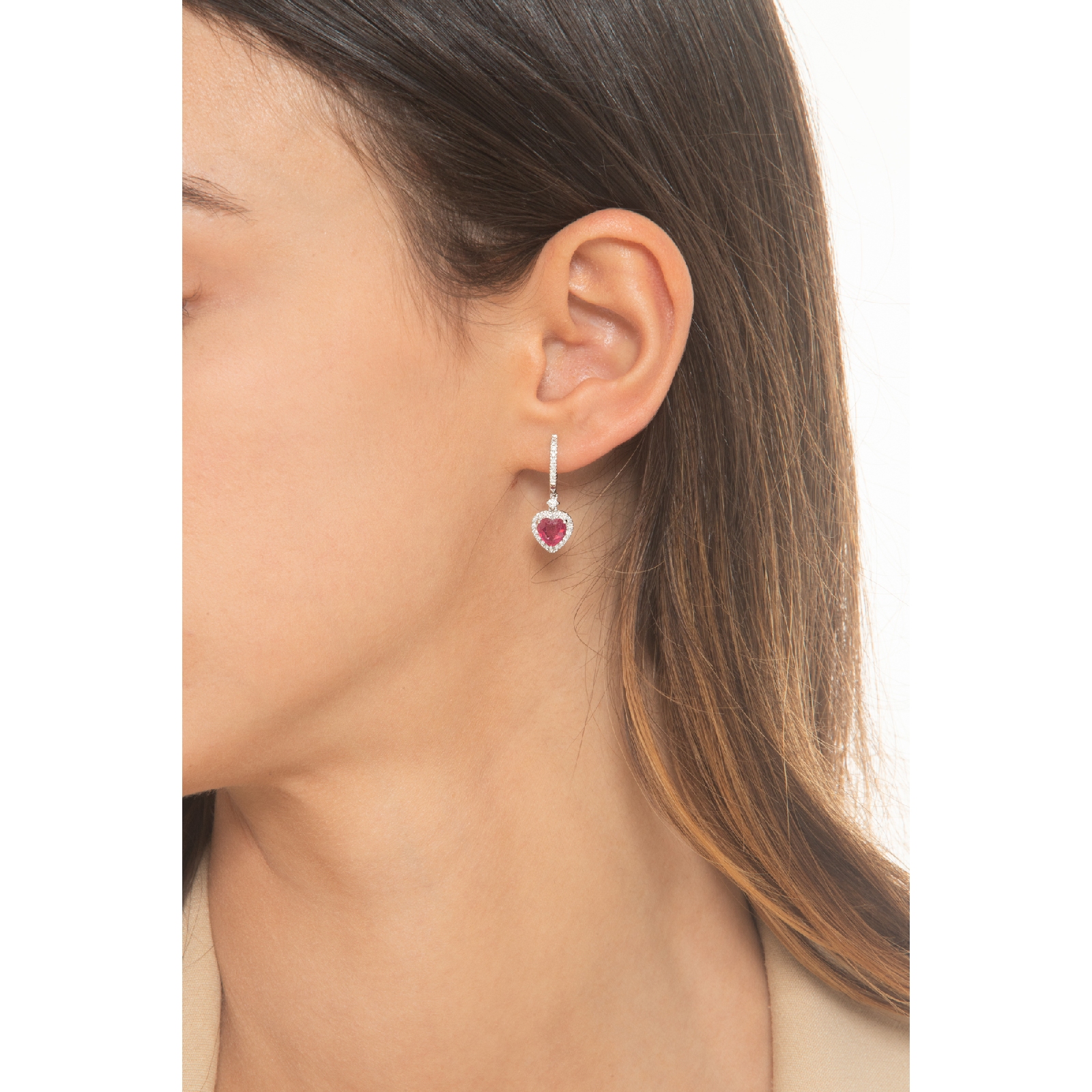Weißgold 750 Ohrhänger mit Herzen aus Rubinen und Diamanten