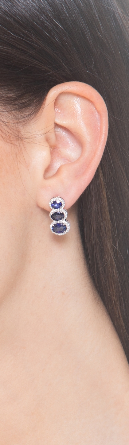 Weißgold Halo Ohrringe mit blauen Saphiren und Diamanten