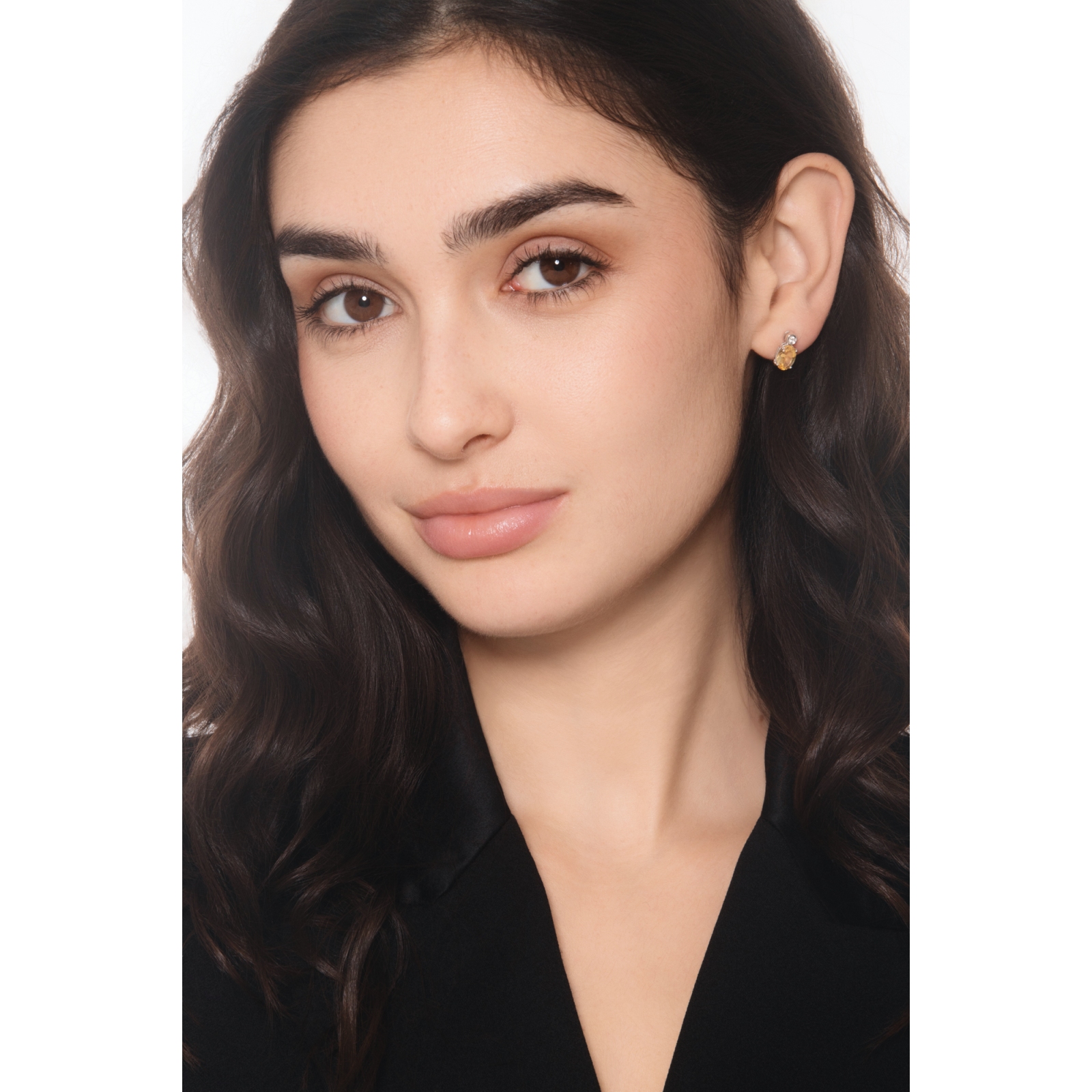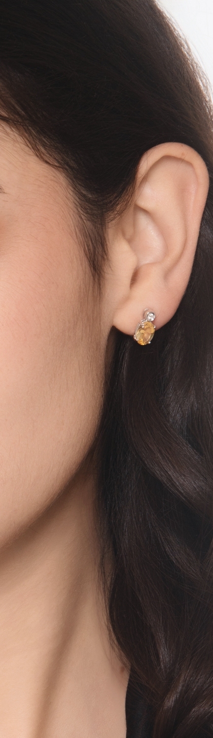 Citrin Ohrstecker mit Diamanten Weißgold 750