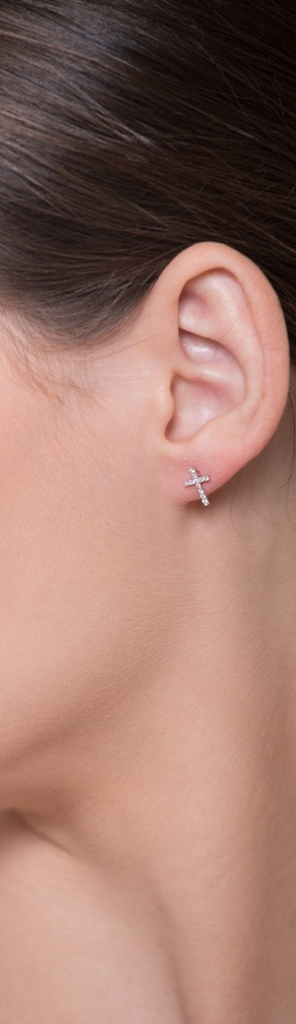 Kreuz Ohrstecker Weißgold 18k