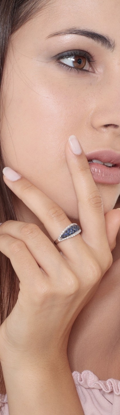 18K Weißgoldring 750 mit Diamanten und Saphiren