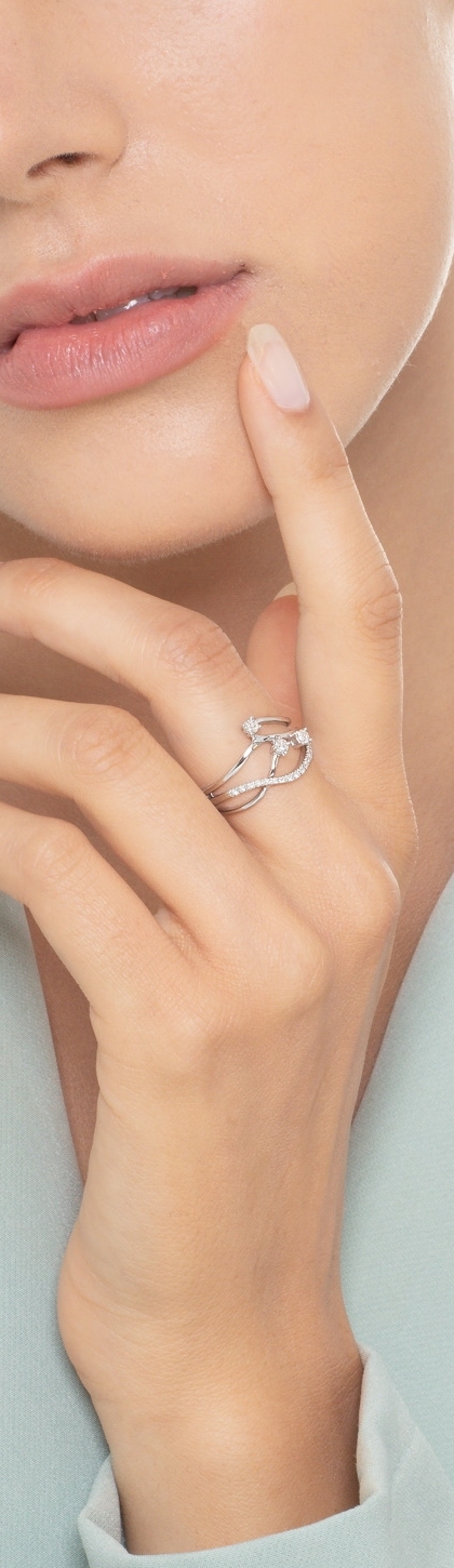 Bandring Weissgold mit drei Diamanten