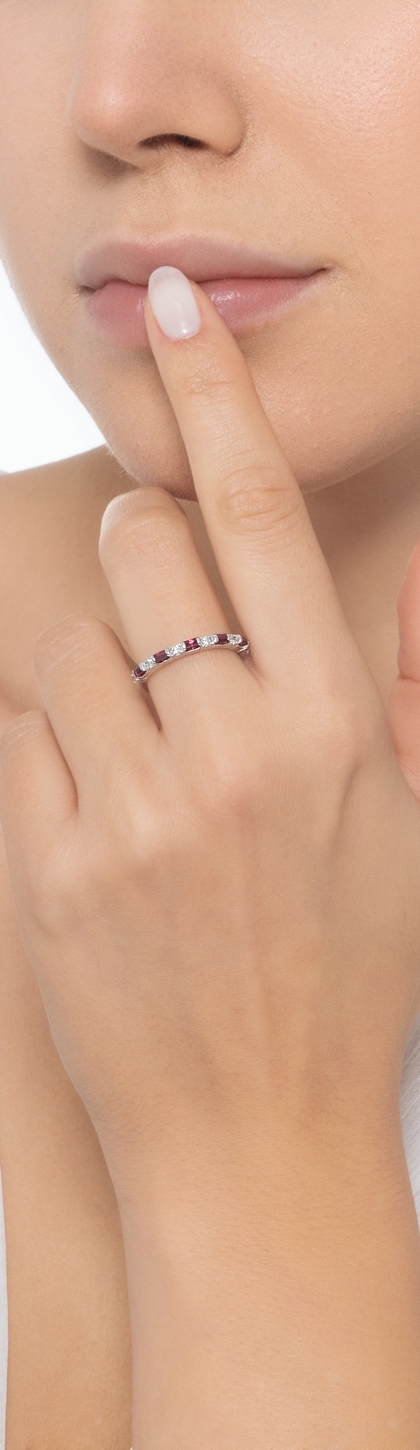 Designer Ring mit Rubinen und Brillanten aus Weißgold 750
