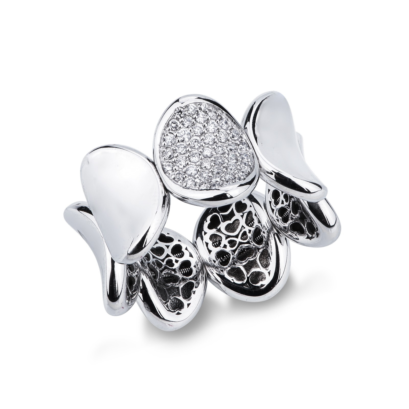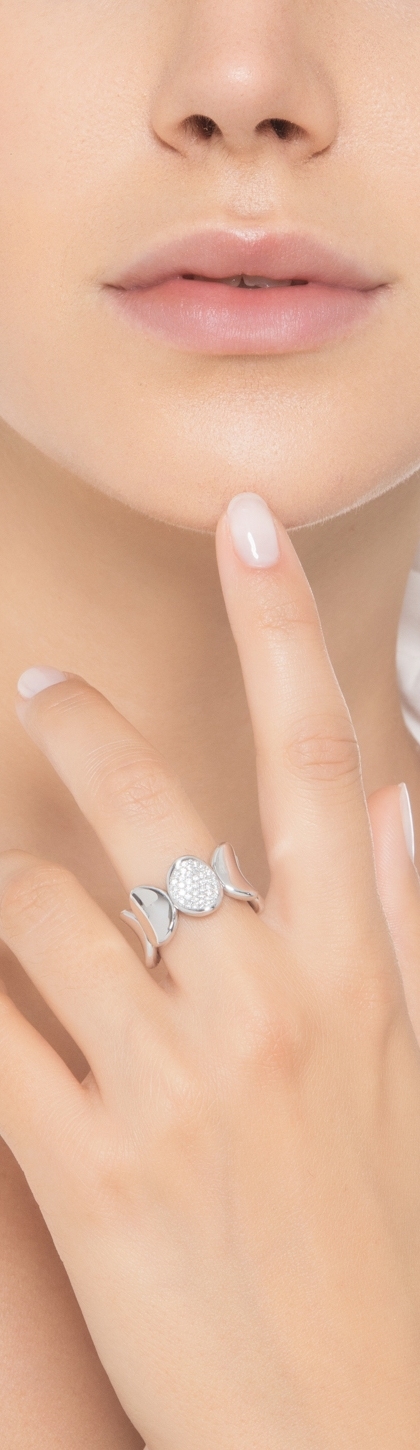 Elastischer Ring Weißgold 18K mit einem Diamanten-Pavé