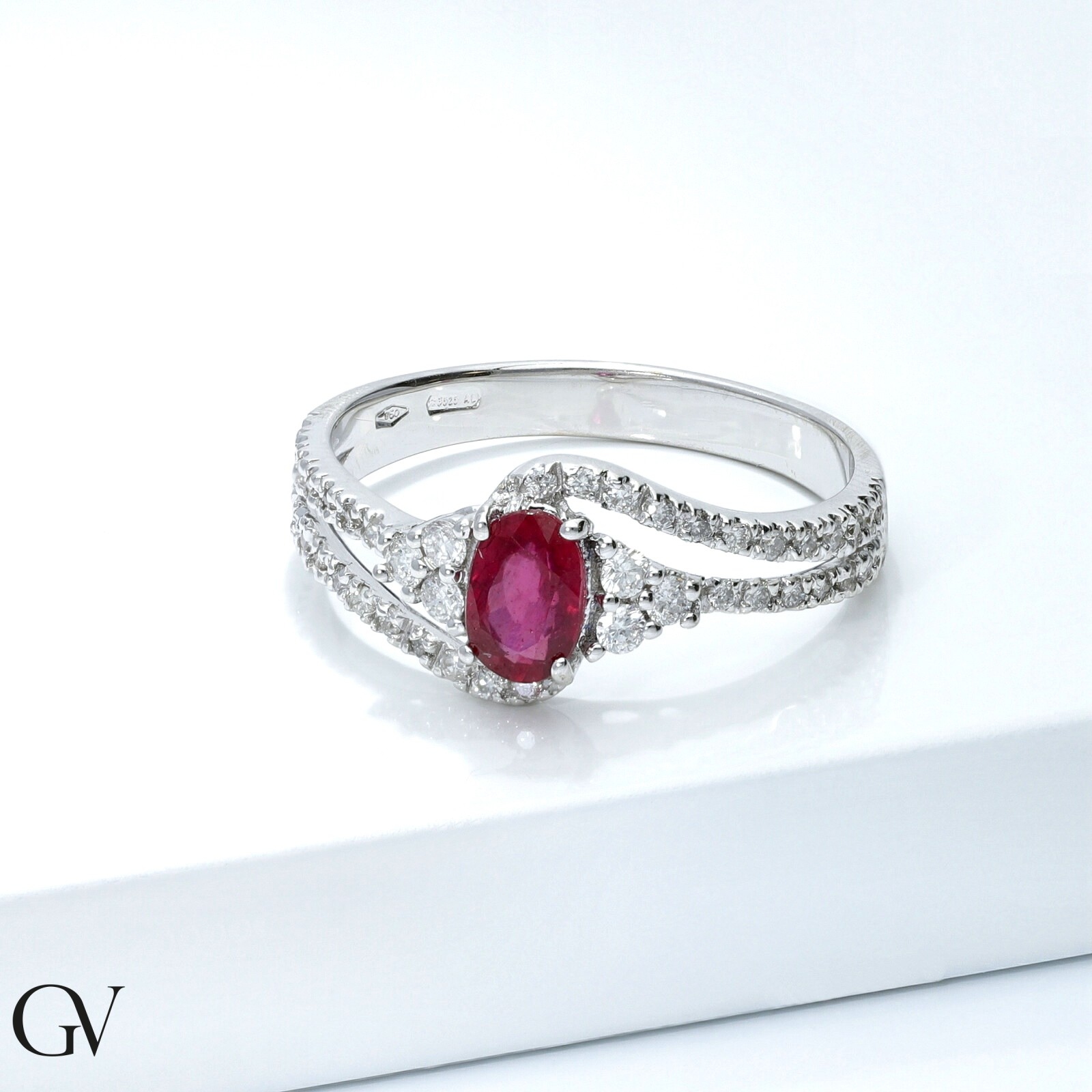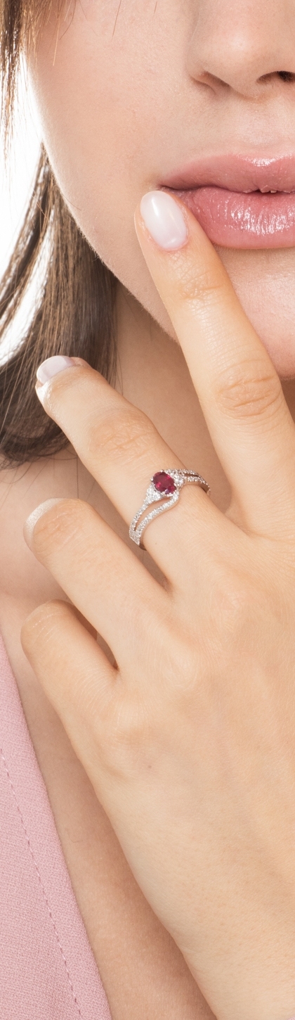 Günstiger Rubinring mit Diamanten 750er Weißgold