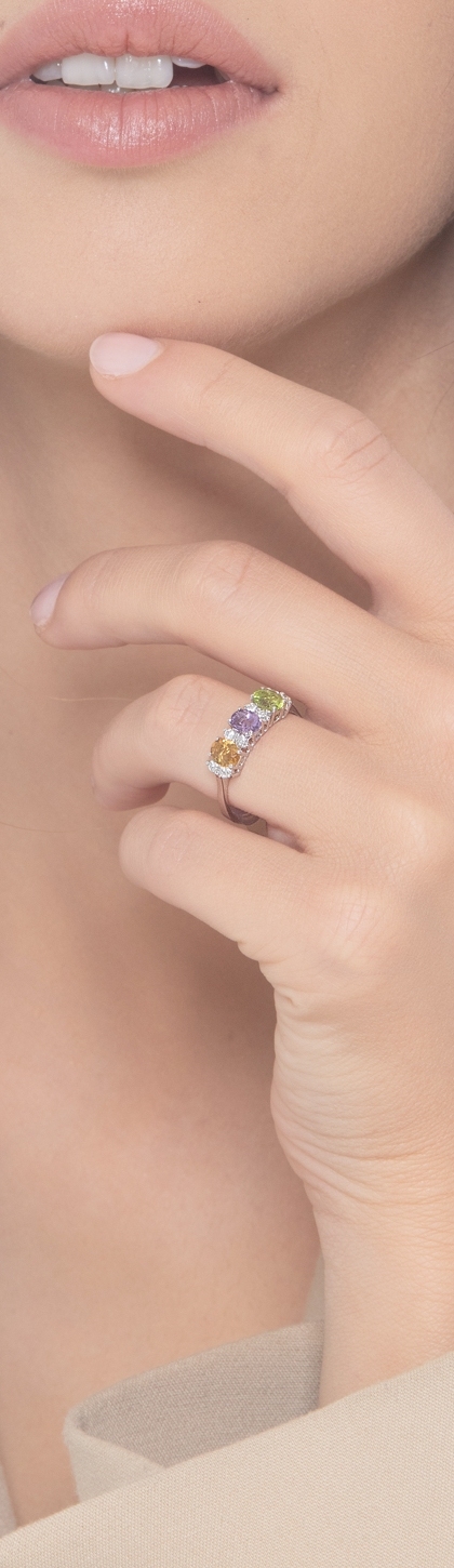 Peridot-Amethyst-Citrin Ring in Weißgold – Rainbow Kollektion
