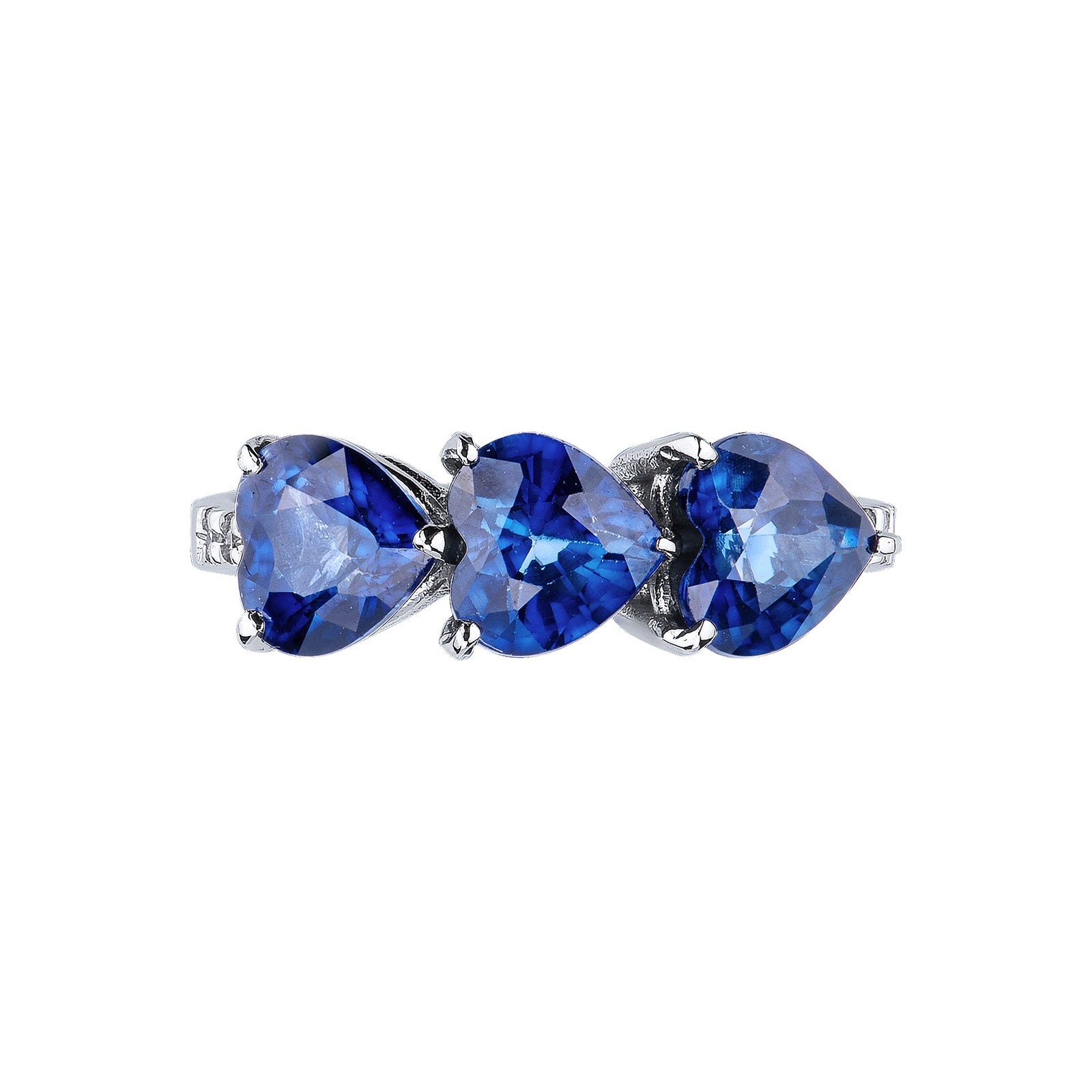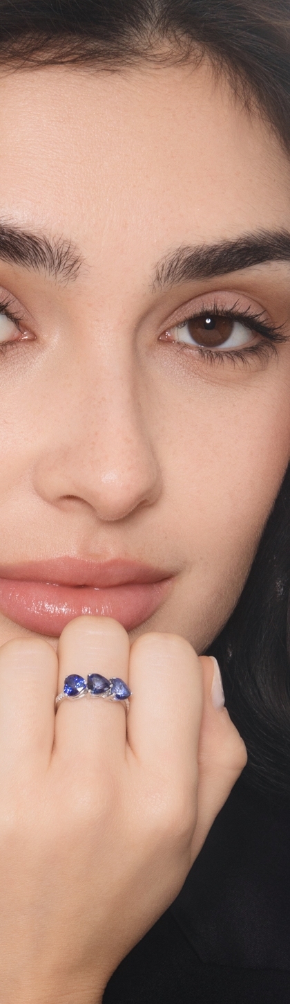 Saphir Ring Weißgold 750 mit drei herzformigen Saphiren und Diamanten