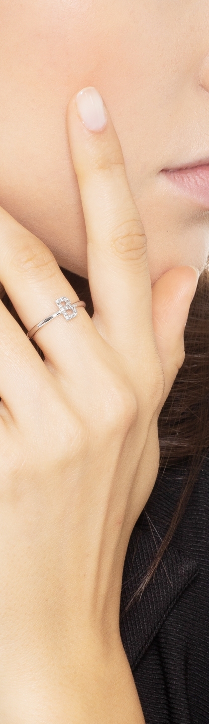 Weißgold 18k Buchstaben Ring mit B aus Brillanten