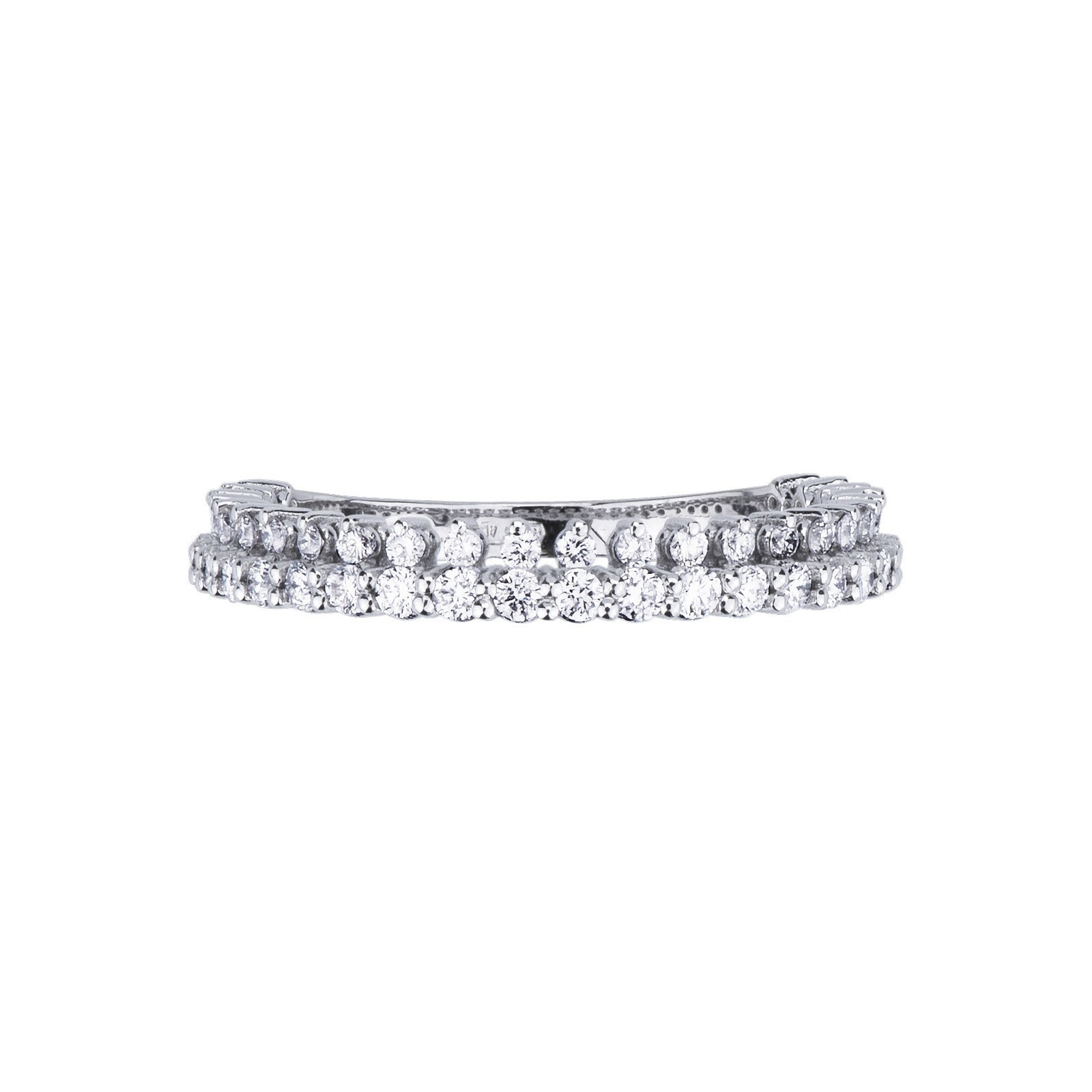 Weißgold 750 halb Memoire Ring mit zwei Reihen Diamanten