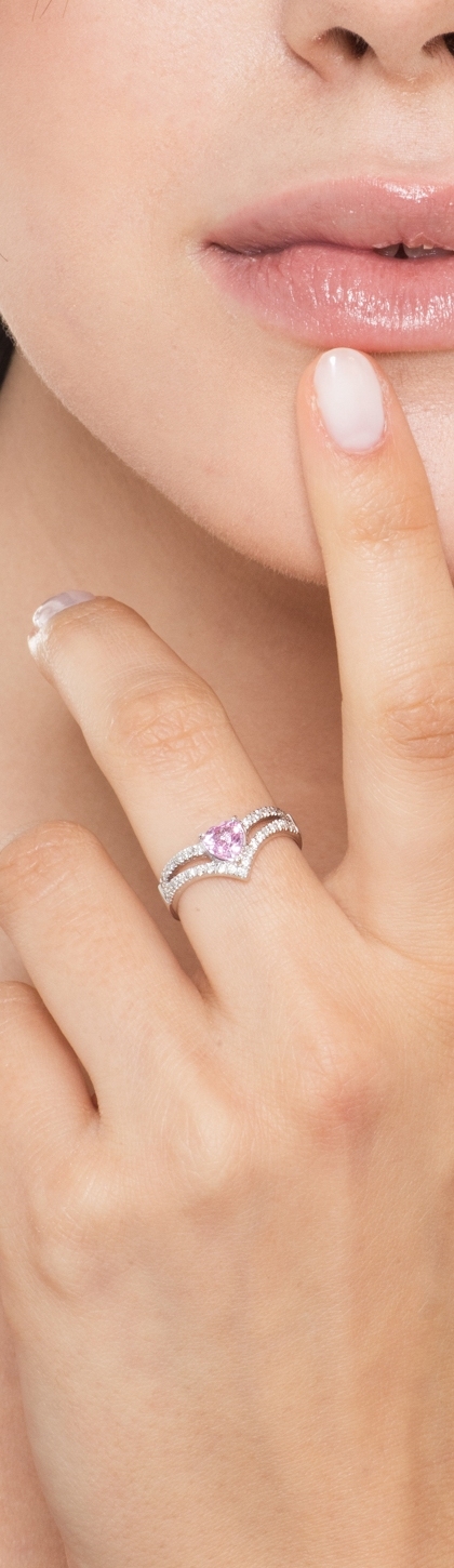 Weissgold 750 Herz rosa Saphir Ring mit Diamanten