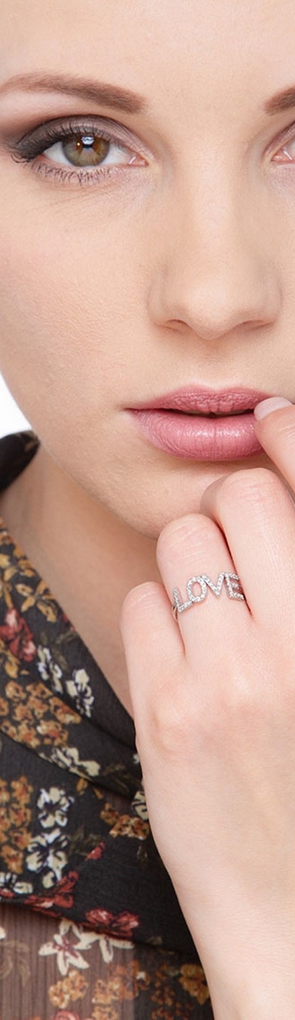 Weißgold Ring Schriftzug LOVE Diamanten