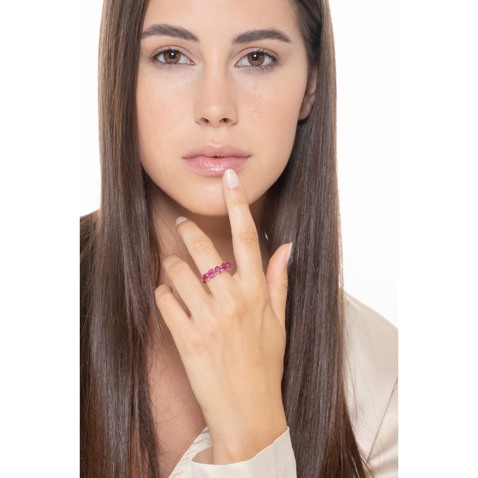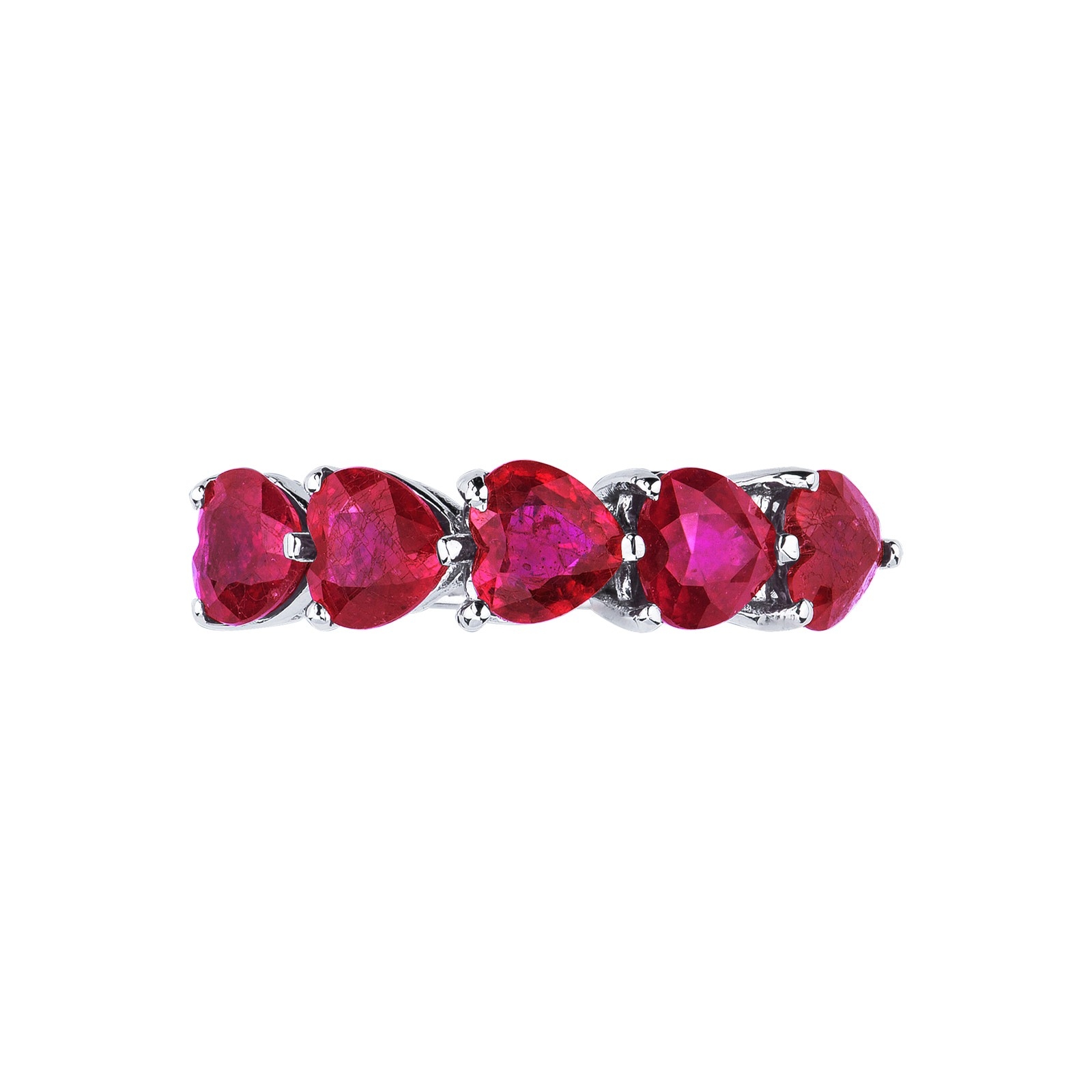 Weißgold Verlobungsring mit fünf herzförmigen Rubinen