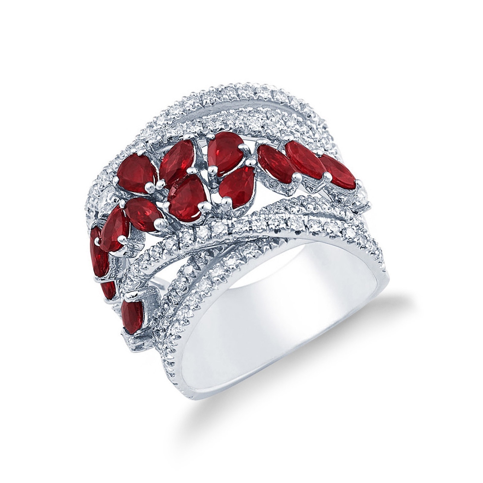 Ausgefallener Rubin Ring mit Diamanten Weißgold 18K
