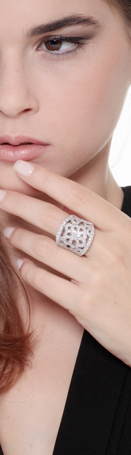 Bandring mit Blume aus Diamanten Weißgold 18K